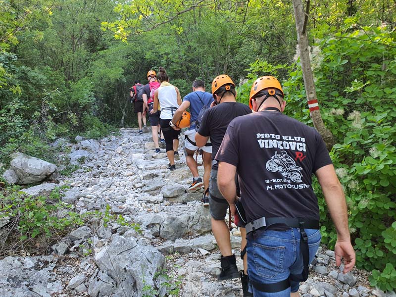 U 16:45 sati dolazimo u Omiš, ulazimo u agenciju te pri potpisivanju izjave o uvjetima korištenja primijetili smo da je Igor pozelenio i ukočio se od straha. Tek tada nam je priznao za svoj strah od visine, tako da nije bilo druge nego staviti ga u čamac i pustiti da pluta Cetinom dok nas trojica sjedamo u kombi koji nas vozi do prve žice. Prije prve žice imamo kratku obuku kada svi isprobavamo na pokaznoj žici. Budući da je meni to bio prvi put, nakon kratke obuke mislio sam da je to ništa, međutim, kad smo došli na prvu žicu koja je najduža i na najvećoj visini, malo me uhvatila panika, to moram priznati. Dariju je također bilo prvi put tako da je Hrvoje otišao prvi, a mi smo nekako zažmirili i „pregrmili“ tu prvu žicu. Prva žica duga je otprilike 700 metara, a na njoj se postiže brzina do 70 km/h. Moram napomenuti da smo imali dvojicu izvrsnih instruktora te je s njima bilo puno lakše to proći. Nakon prve žice, ostalih sedam žica je „mačji kašalj.“ Nakon dva i pol sata čistog adrenalina, kombi nas vraća u centar Omiša gdje nas Igor već čeka na kavi i tako smo obilježili naš peti dan putovanja. (Zipline smo platili 400 kn po osobi, a vožnju čamcem 300 kn).