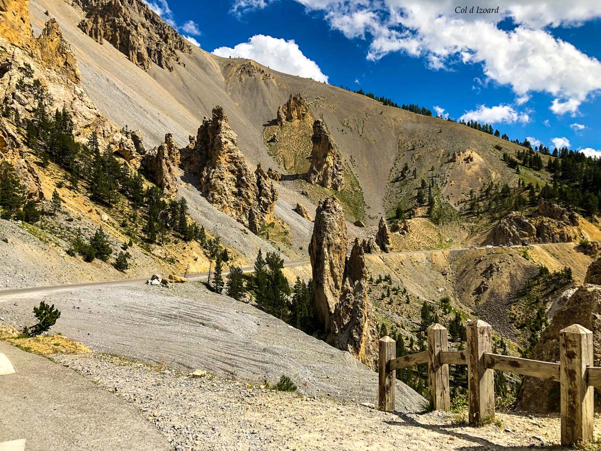 Izoard je na vrhu kao planina od kamena i pijeska što se najbolje vidi pri spuštanju na drugoj strani gdje par stijena, koje se uzdižu uz cestu, izgledaju kao da ih je oblikovao vjetar koji ovdje skoro uvijek puše. Uz takav krajolik, spuštanje sa Izoarda je posebni doživljaj, pri čemu je asfalt odličan, a zavoji savršeno poredani.