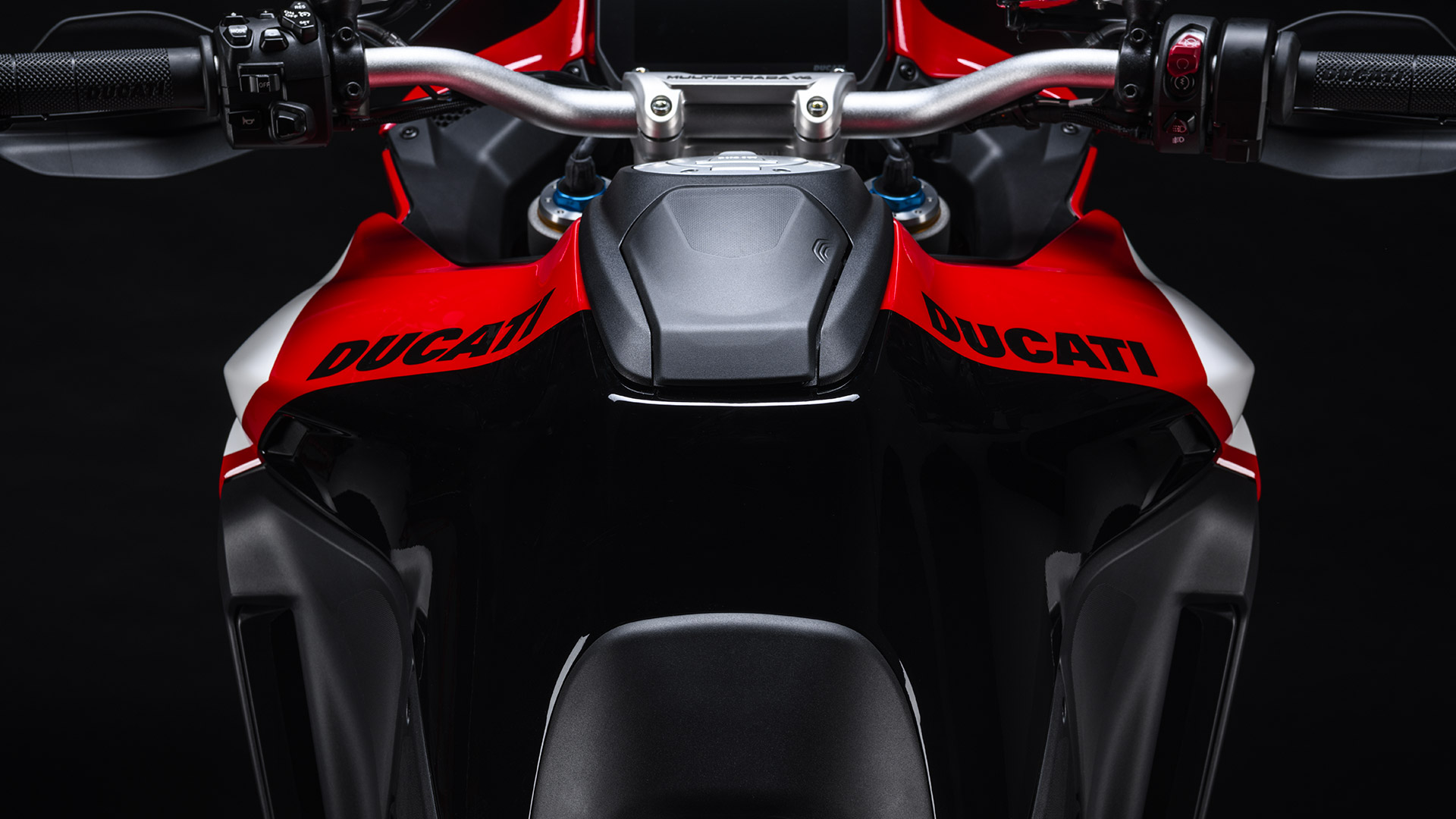 Multistrada V4 Pikes Peak je razvijena kako bi sportske kvalitete Multistrade V4 S dovela do ekstrema: namjenski položaj za vožnju, 17-inčni kotači sa sportskim gumama, jednostrana klackalica, Öhlins ovjes i novi Race Riding Mode.
