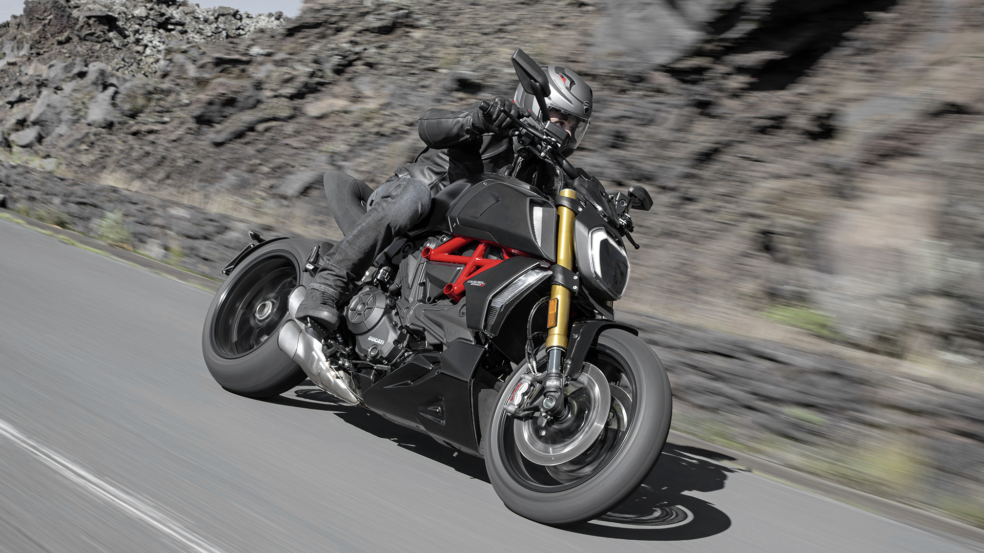 Diavel 1260 S “Black and Steel” pridružuje se S verziji u Thrilling Black & Dark Stealth boji s crvenim okvirom i crnim kotačima. Standardna verzija dostupna je u Dark Stealth boji s crnim okvirom i crnim kotačima.