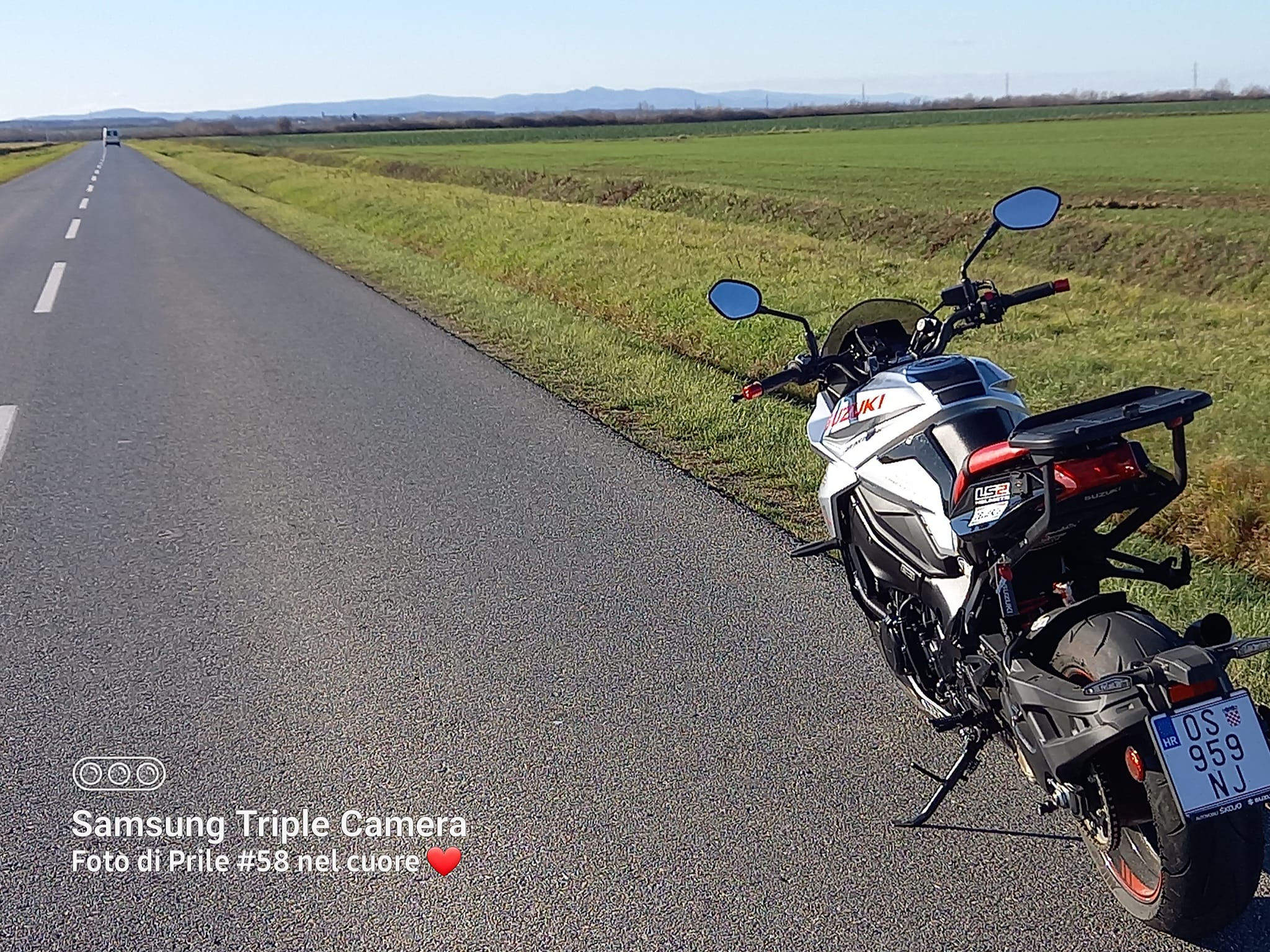 U Našicama na Tifonu uživam u izvrsnom croissantu sa marelicom i macchiato con latte freddo. Na povratku u Osijek, negdje izmedju Podgorača i Budimaca ispred mene se kretao policijski kombi . Vukao je kolonu nesretnika za sobom koji ga se nisu usudili preteći. Budući da smo se svi našli izvan naseljenog mjesta došao sam u ravninu s kombijem, klimnuo gospon drotu i pokazao mu da ja odoh. On mi je uzvratio klimanjem glave. Mislim da mi je kombi nestao u retrovizorima za manje od 3 sec., a gospon drotu sam uvažavajuci ga odsvirao jedno Wagnerovo djelo. Nakon hladnih ali predivnih 220 predjenih km, u toplini garaže skidam klokana sa sebe i razmišljam koliko je lijepa i posebna ta moja Slavonija...ma u svako godišnje doba ❤❤❤❤