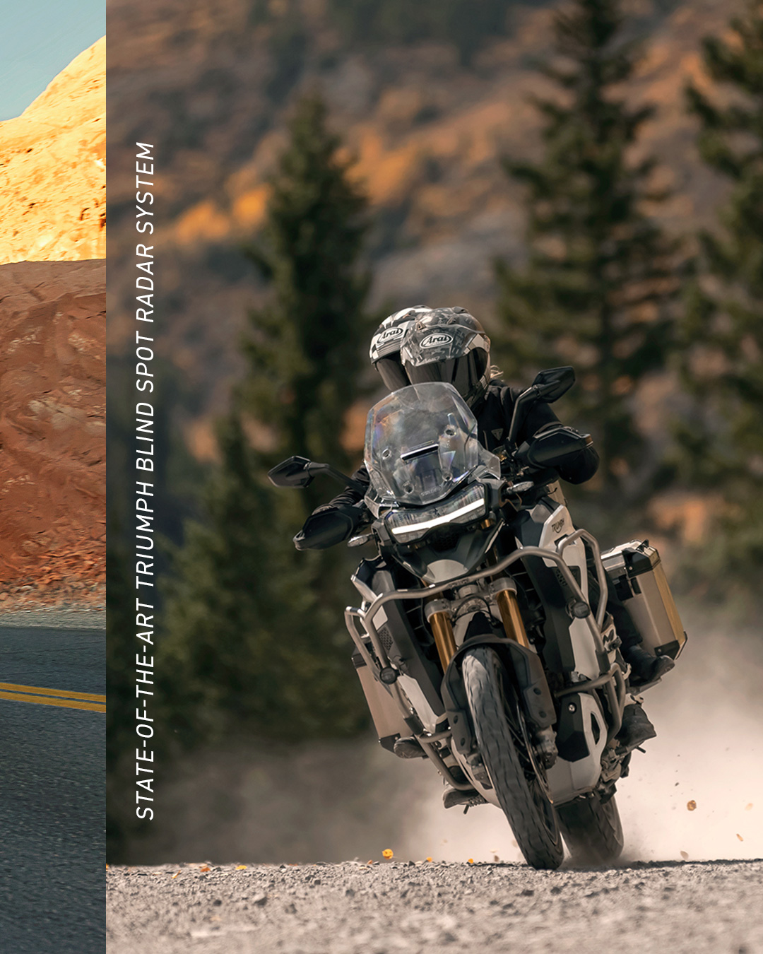 Potpuno opremljeni, s spremnikom od 30 litara i najsuvremenijom tehnologijom uključujući Triumph radarski sustav za mrtve kutove, potpuno novi modeli Tiger 1200 Explorer donosi svjetsku sposobnost i udobnost u kategoriju avanturističkih motocikala velikog kapaciteta.