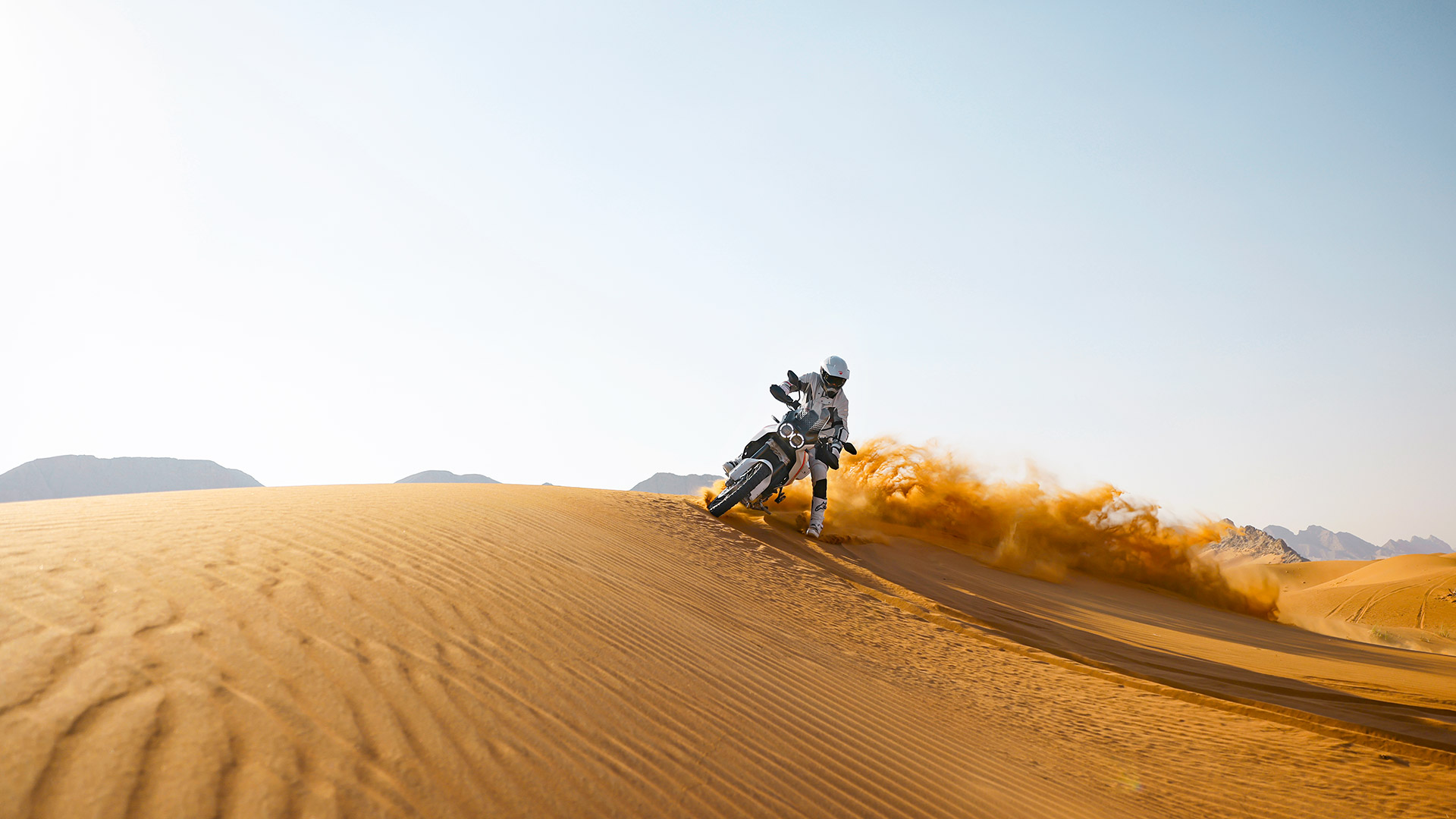 Istraživanje. Zabava. Izvođenje. I velika želja za uzeti i otići prema horizontu. Identitet ovog motocikla ne ostavlja mjesta sumnji: samo ga gledajući, uvodi vas u atmosferu Dakar utrka.