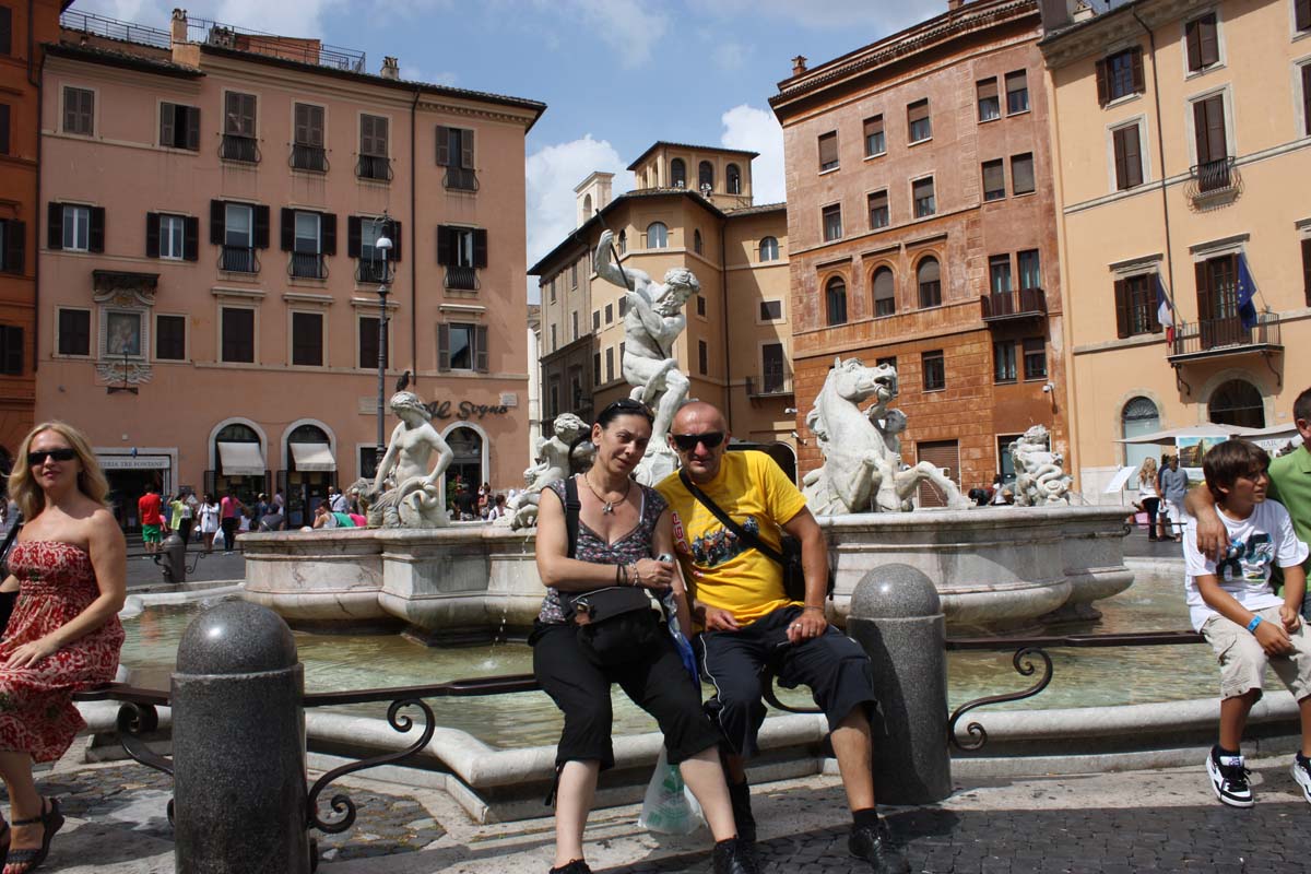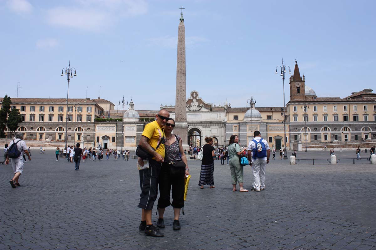 Dakle što da vam kažem, uživao sam. Jurim ulicama Rima kao da sam ovdje rođen. Ono što je Nada pri tom proživljavala nesmijem niti zamislit. Parkiramo se u blizini Piazze Popolo i dalje nastavljamo pješice. Ova ogromna Piazza pružila se ispred nas. Nekoć je služila za održavanje svečanosti ali i za javna pogubljenja. 1539. Godine Papa Siksto V. dao je zadatak Domenicu Fontani da sagradi fontanu okrunjenu 25 m visokim obeliskom koji i danas plijeni pažnju turista.