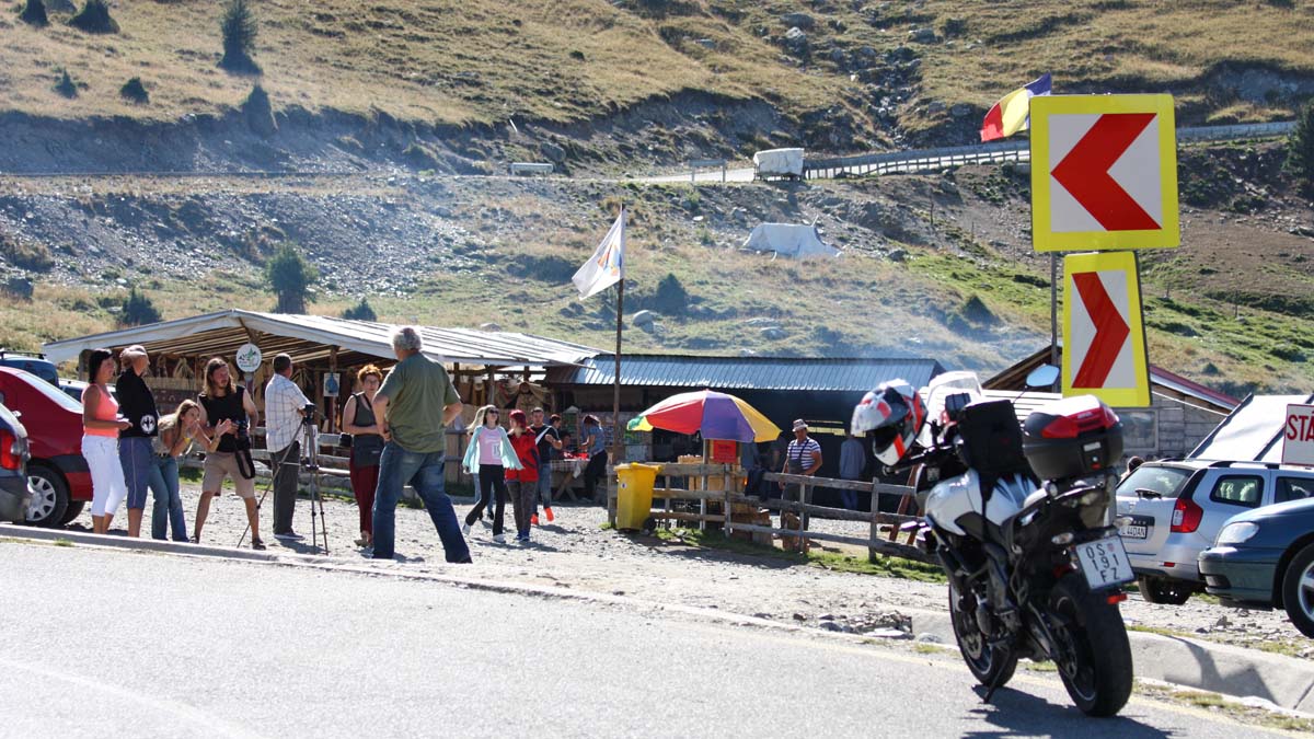 Koji je cilj njihova bjesomučna hoda nismo uspjeli saznati. Sve to zajedno sa navedenim životinjama čini svojevrstan dekor Transalpine kakav se viđa samo u putopisnim emisijama iz nekih egzotičnih i dalekih krajeva. Usponi sada postaju sve strmiji a cesta sve više dobija zmijoliki oblik,odnosno postaje sve zavojitija. Na jednom proširenju smjestilo se jedino divlje odmorište uz cestu -Stana Stefanu. U biti, to je nekakav brže bolje sklepan šator sa drvenim stolovima i klupama za sjedenje u kojem grupa gorštaka spravlja tradicionalna planinska jela iz ovog podneblja, i prodaje razne rukotvorine. Uglavnom su to specijaliteti od janjetine,ovčetine i ponešto divljači, a prodaju razne odjevne predmete,drvene figure te ovčje runo i suvenire.