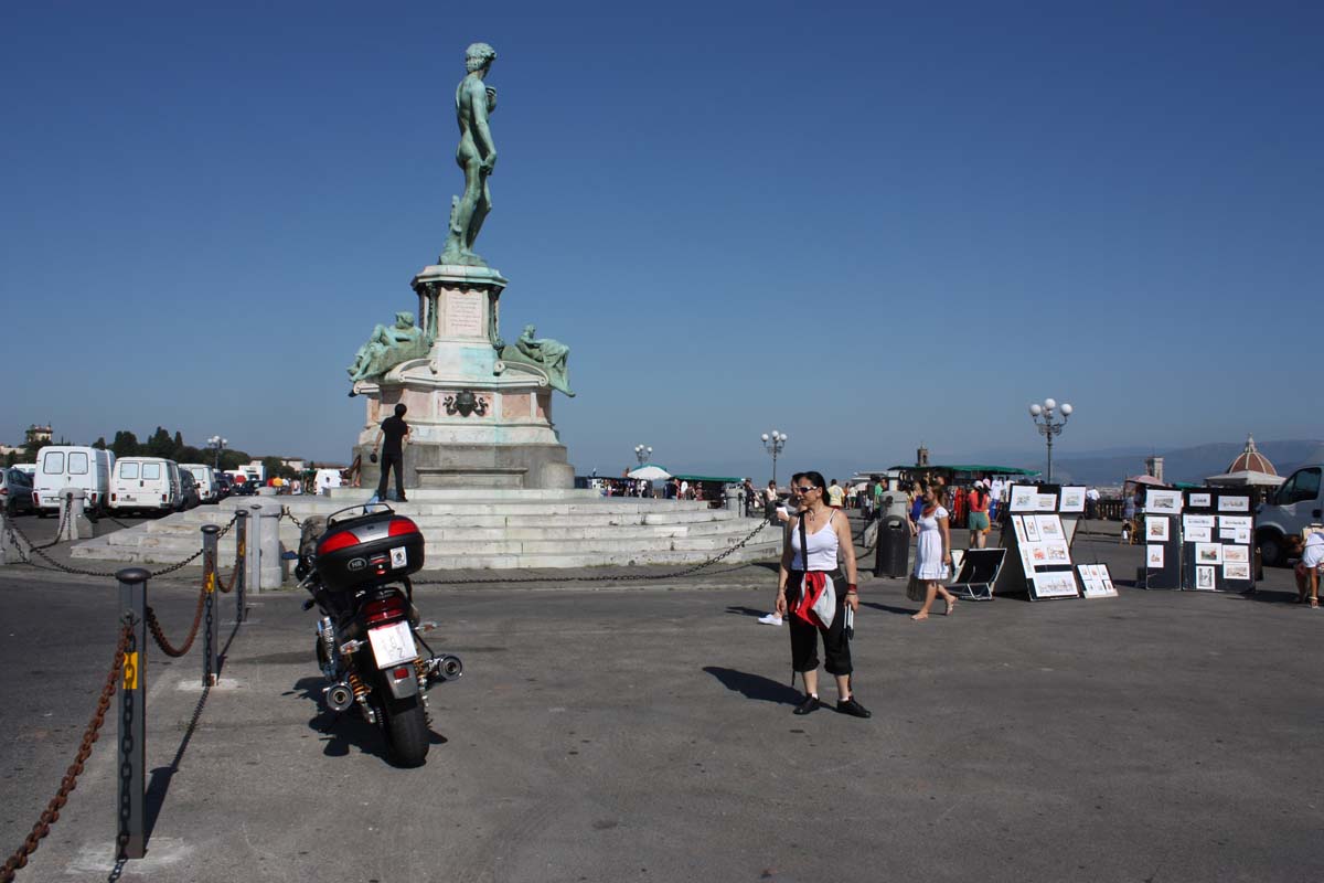 Prema planu ovdje bi trebali ostati nekoliko dana prvenstveno da upoznamo Firencu i njezinu okolicu u krugu od 50 – 100 km. Za danas nam je dosta, umorni smo pa odlazimo na terasu bara u campu. Odavdje se takođe dobro vidi grad pa uz pivo i pizzu gledamo kako se noć spušta nad jedan od najljepših gradova na svijetu. Ujutro se nakon kave i kraćeg dogovora spuštamo motorom u grad.Firenca je grad renesanse, Michelangelovog Davida, Botticelijevog rođenja Venere, Galilea i velikog pjesnika Dantea čijom je zaslugom nastao talianski književni jezik i gdje je rođena talijanska književnost. Parkiramo se na Piazi Santa Croce. Gužva koja ovdje vlada teško se riječima može opisati. Turista iz svih krajeva svijeta ima na svakom centimetru ovog grada. Pješice se probijamo kroz gužvu do Piaze del Duomo gdje se nalazi impozantna katedrala koju krasi otmjena ali robusna Brunnelleschijeva kupola.