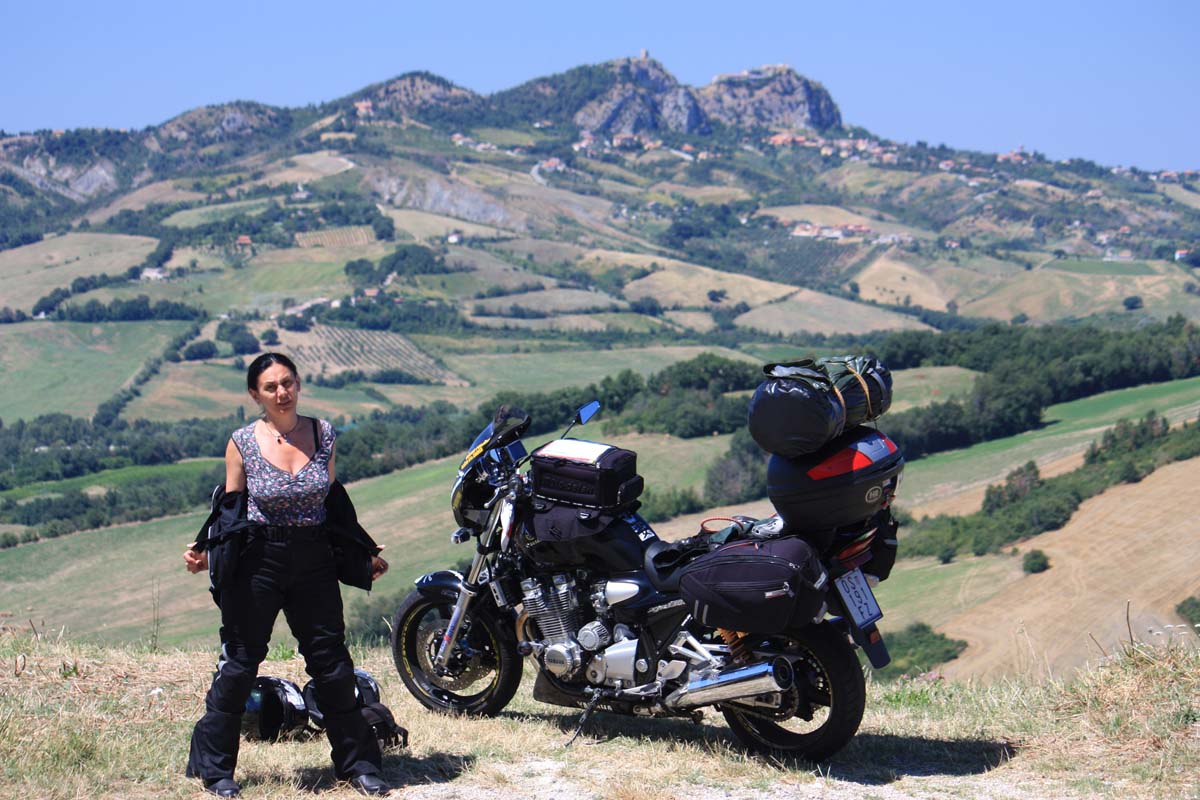Kod Arezza se odvajamo prema San Marinu. Ovdje počinje prava golgota zbog ceste koja je toliko loša i uska da bi i momci sa enduro motorima imali dosta muke. Priroda je predivna, ali kao da nije dala mogućnosti da se njome prođe bez puno truda. Kako je jedan frend davno rekao „sve sama jama budi bog s nama“. Zaključujem da smo brže napredovali 1943. prema Staljingradu. Na nekakvim kolcima pribijenim uz put stoji natpis Rimini. Držimo se putokaza kao pijan plota i nakon 50-tak km kroz ovo bespuće izbijamo na odličnu cestu ispred San Marina. Dok se uspinjemo cestom u grad pred nama se otvara panorama kakva se rijetko viđa. Osjećaj je kao da nismo na zemlji nego na nekoj drugoj planeti. Riječ nepregledno ovdje gubi svaki smisao. Pogled seže preko brda i brda i opet brda i dolina i udolina i opet i tako bez kraja. Savršeno. U San Marinu radimo pauzu od sat – dva, taman dovoljno za ručak, kratak obilazak, i naravno kupovinu parfema, jer ovdje je bescarinska zona i cijene pojedinih artikala su i do pet puta niže nego drugdje.