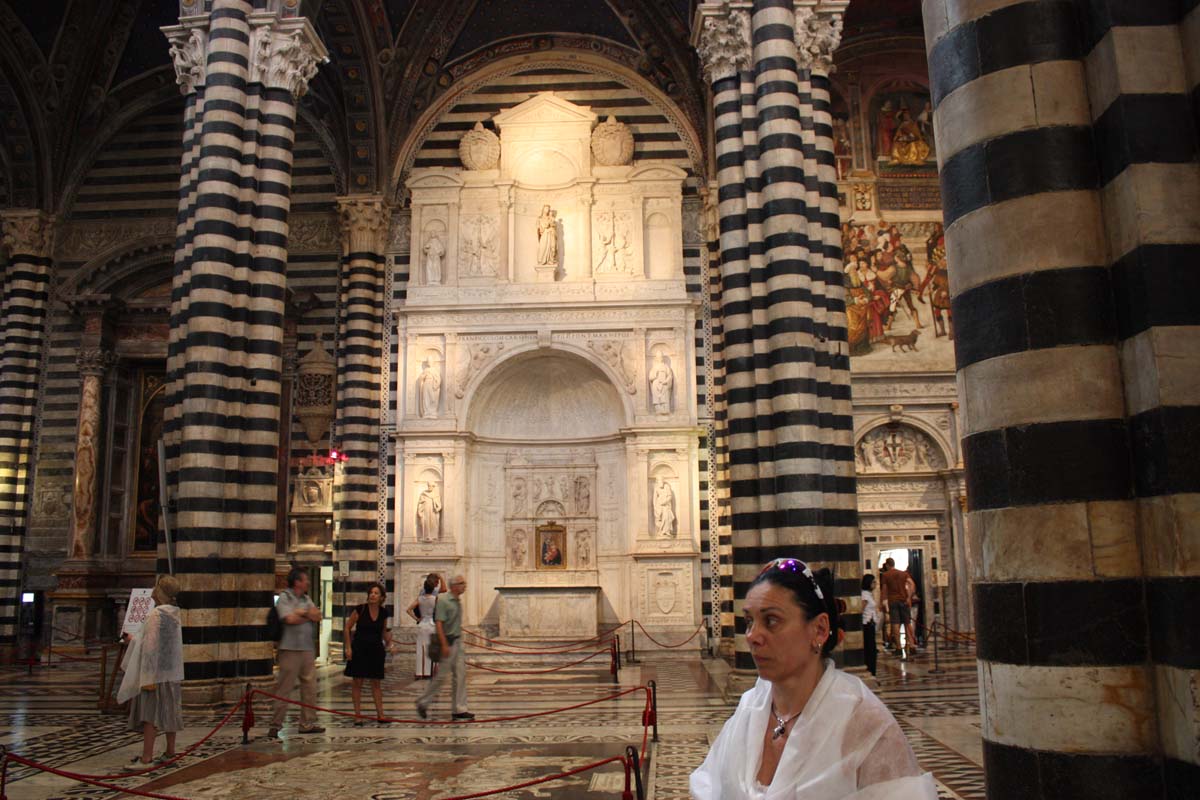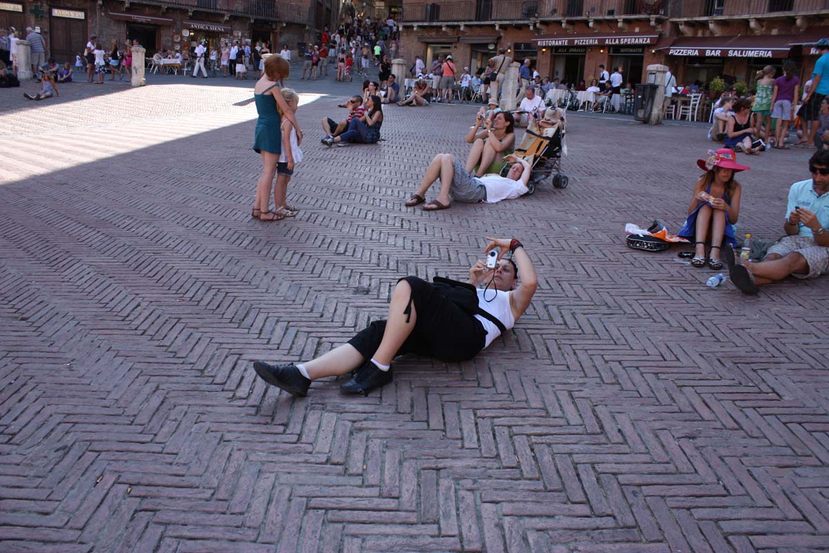 Kroz veliku gužvu dolazimo do Piazze del Campo. To je najljepši trg u Italiji, a mnogi kažu i u Europi. 1100-te godine sagrađen je povrh Rimskog foruma. U obliku je polumjeseca koji se ljevkasto spušta prema Palazo Pubblico, Gradskoj vječnici. Trg je ogroman, toliki da se na njemu dva puta godišnje održavaju konjske utrke. Mnoštvo ovdje dolazi na promenadu, razgovore ili kratki odmor. Većina sjedi na podu i pogledom kruži uokolo. Nakon dužeg odmora teško se odvajamo od ove magnetne privlačnosti raskošnog trga i kroz mnoštvo se probijamo prema Piazi del Duomo do poznate katedrale. Gotička katedrala divovskih razmjera riznica je prepuna umjetnina majstora poput Michelangela, Pisana, Duccia i Donattela. Dugo se zadržavamo unutar Duoma gdje se u tišini divimo bogatstvu umjetničkih djela. Ova katedrala je prema zamisli graditelja trebala biti največa katedrala u kršćanskom svijetu, ali kuga je 1348. godine omela taj plan. Siena je grad iz kojega je teško otići, ali mi ujutro moramo dalje pa je vrijeme da se vratimo u Firencu.