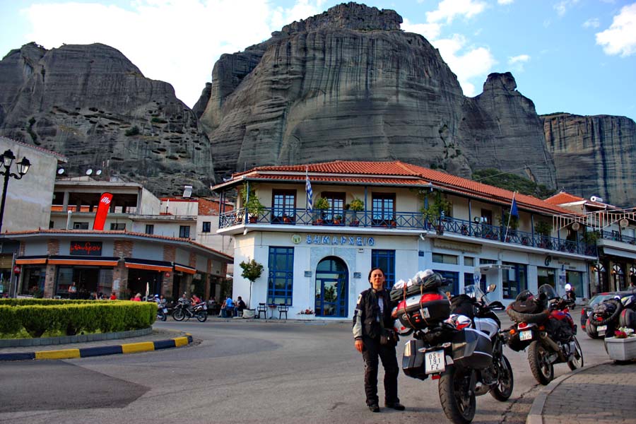Na ovaj način Grci su cijenama ove godine uspjeli preteći čak i voljenu Italiju za koju znamo da je najskuplja država u našem okruženju. Po smještaju u kampu koji se nalazi tik do znamenitih stijena odlazimo do grada na kebap i pivo. Veče nam protiče u baru campa gdje nam se oko 22 h priključuje Dorijan iz Kutine koji je tek stigao na malom Tenereu. Jutro i prijepodne odvojili smo za posjet veličanstvenim manastirima koji se uzdižu okomito na tamnosivim stjenovitim tornjevima 300 m nadmorske visine. Ovaj prirodni fenomen nastao je prije nekoliko milijuna godina kao posljedica erozija i potresa. Prvi pustinjaci su se ovdje naselili prije 1000 godina. Nakon njih se ovdje razvila redovnička zajednica koja u 14 st. počinje graditi manastire kako bi po povjesnim zapisima bili bliže Bogu a i sigurni od neželjenih posjetilaca. Ukupno je sagrađeno 24 manastira.