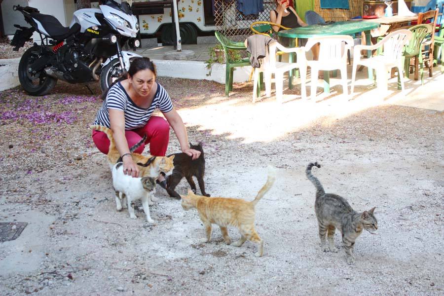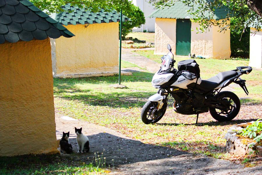Nemamo dojam da se nalazimo u Grčkoj nego više u nekoj toscanskoj ili provansanskoj čaroliji. Očima širom otvorenim kao djeca u tvornici igračaka upijamo svu ljepotu ovog posebnog grada. Nakon što smo se prilično nahodali odlazimo do campa na počinak, barem smo tako mislili. Dolaskom do naše kućice dočekao nas je odbor za doček u vidu tri – četiri mačije njuškice koje su nas znatiželjno promatrale sa sigurne udaljenosti. To je bilo više no dovoljno da nas sjeti na naše dvije ljubimice Signoru i Kalistu koje smo povjerili na čuvanje našoj predobroj teti čuvalici Martini. Naša grčka priča je zahvaljujući ovim macama dobila poseban ugođaj. Sve naredne dane našeg boravka na Krfu obilježila su ova draga bića. Budući da ljetna sezona još nije počela ne radi ni restoran a niti trgovina u kampu pa su ove cice prepuštene same sebi. Da stvar bude gora jedna od njih je mama i doji jedno predivno pufnasto mače koje ju je doslovce pretvorilo u hodajući kostur. Istog trena bacili smo se u akciju na način da smo nahranili gladne životinje i dali im svježe vode.
