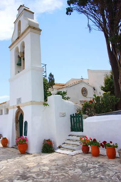Nakon okrjepe odlazimo do 4 km udaljenog manastira Valherna podno stijena Pontekonisija koji su omiljeno mjesto ljubitelja fotografije. Ti su motivi Krfske idile poznati diljem svijeta. Nesklad svemu tome ali na neki način i atrakciju daje avionska pista koja završava tik do ovog manastira pružajući se nasipom u moru koji gotovo dotiče otočić koji je kratkim molom povezan sa kopnom. Nedaleko odavde nalazi se Ahilion,prostrana vila sa zelenim parkom sagrađena 1890. god. za Austrijsku caricu Elizabetu pa odlazimo i do nje. Na povratku u kamp zaustavljamo se u marketu da obnovimo zalihe jer smo sinoć sa frendovima iz Užica ispili sve što se imalo.