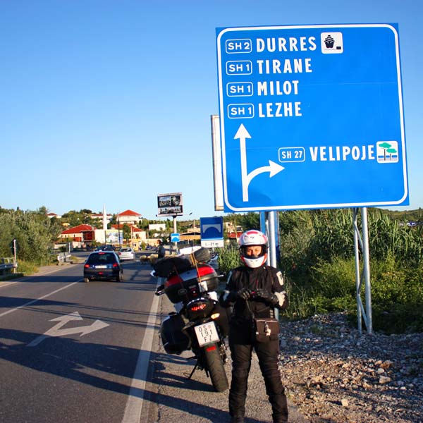 Treba reći da je gostoljubivost ovdašnjih ljudi uključujući i policiju prema motoristima izuzetna i da se trude pomoći putniku u svakom smislu pačak i do te mjere koja uključuje vožnju pješačkom zonom i samim centrom uz kulturne znamenitosti. Nakon preljepog Kotora na putu nailazimo i na ostale dragulje crnogorske rivijere poput Sv. Stefana, Bara i Ulcinja. Pred granicom s Albanijom natačemo Kawca gorivom (1,12 Eu lit. ). Uskoro ulazimo u Albaniju a to ujedno znači i u jednu sasvim drugu dimenziju poimanja svijeta kakvog poznajemo. Policija uz cestu stoji na svakih 10-tak kilometara no nas nezaustavljaju dok su automobilisti na udaru. Ceste su dijelom dobre a većinom nisu za upotrebu niti traktorima a kamoli motorima.