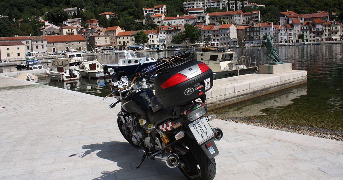 Strmom i krivudavom cestom spuštamo se do samog ulaza u Bakar gdje parkiramo motor kod hotela Jadran na samoj obali odakle počinje gradska riva i naša šetnja po ulicama ovog starog i zanimljivog grada. Iako je špica turističke sezone ovaj preljepi grad odiše mirnoćom i spokojem.