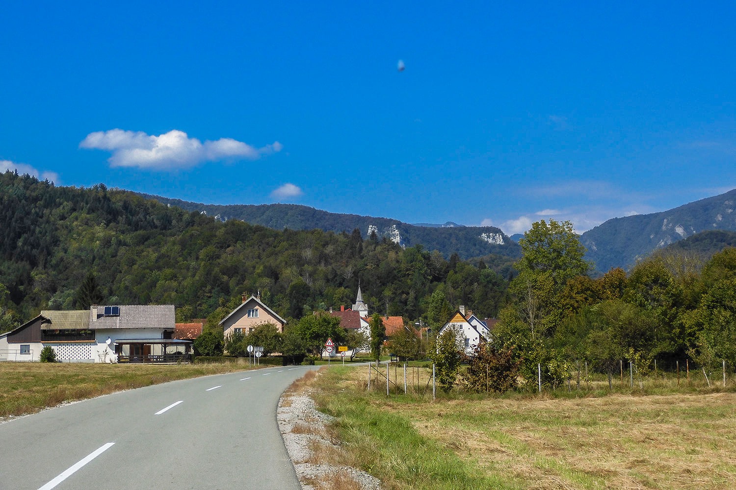 Od Broda na Kupi u smjeru Čabra cesta postaje osjetno šira i ugodnija za vožnju. Vozimo polako jer želimo da nam ovih 50-ak kilometara traje što duže. Da što duže uživamo u ovom ranojesenskom toplom danu i na ovako lijepom mjestu. Cijelim svojim putem cesta prati tok rijeke Kupe sve do sela Hrvatsko, gdje se u Kupu ulijeva rijeka Čabranka. Na mjestima se vozimo kroz pitomu kupsku dolinu i pitoreskna mala mjestašca dok na nekim mjestima vozimo kroz uske klance čije obale povezuju ostaci visećih mostova koji odavno više nisu u funkciji.