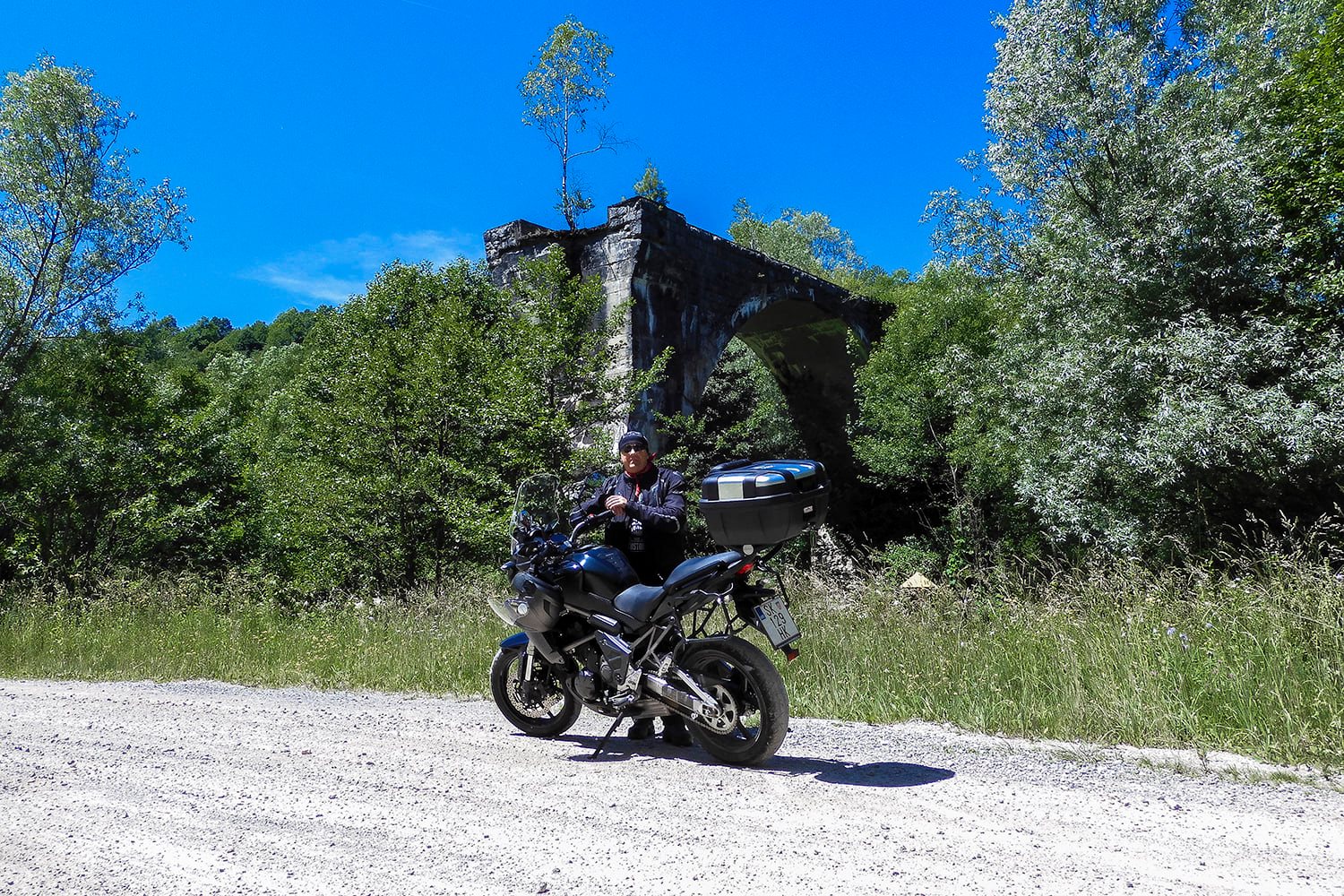 Vraćam se na Dobru i uz žubor njene vode vozim dalje do Vrbovskog, gdje nailazim na ostatke starog vijadukta. 1939. godine započela je gradnja željezničke pruge od Vrbovskog do Kočevja u Sloveniji. Ali početkom Drugog svjetskog rata gradnja je prekinuta i nikada nije nastavljena. Ostao je taj nedovršeni vijadukt kao i dva probijena tunela, jedan u Vrbovskom, a drugi kod Malog Jadrča.