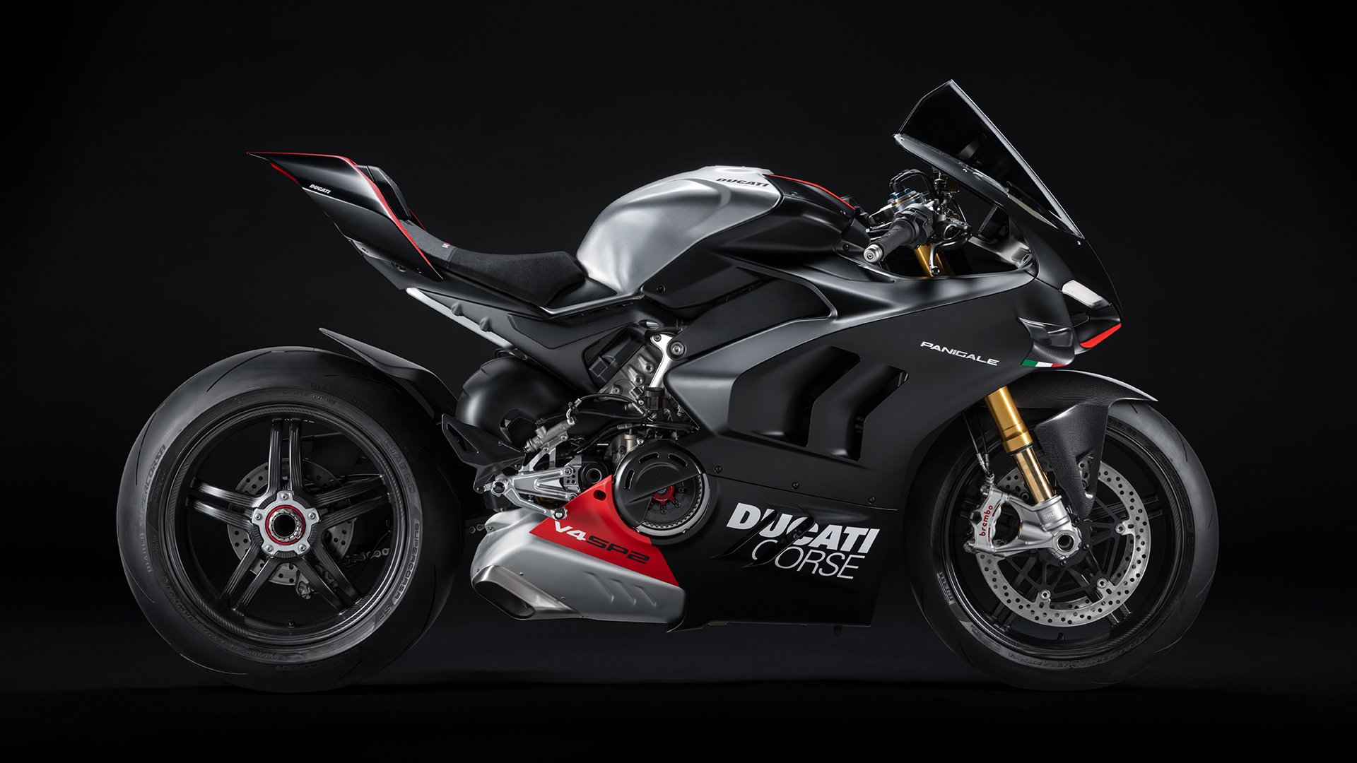 Panigale V4 SP2 karakterizira posebna livreja "Winter Test", u kojoj je mat crna boja obloga kombinirana s mat karbonskom završnom obradom naplataka i krila, u kontrastu sa svijetlocrvenim akcentima i sjajem izloženog brušenog aluminija. Desmosedici Stradale od 1103 ccm porijeklom iz MotoGP-a, naplatci od karbonskih vlakana, kočione čeljusti Brembo Stylema R®, MCS radijalni glavni cilindar, suha spojka, lanac 520, podnožje za noge i poseban komplet za korištenje na stazi: "SP" tehničke specifikacije potiču na maksimum trkaće karakteristike Panigale V4 i prate sva poboljšanja napravljena na verziji iz 2022.