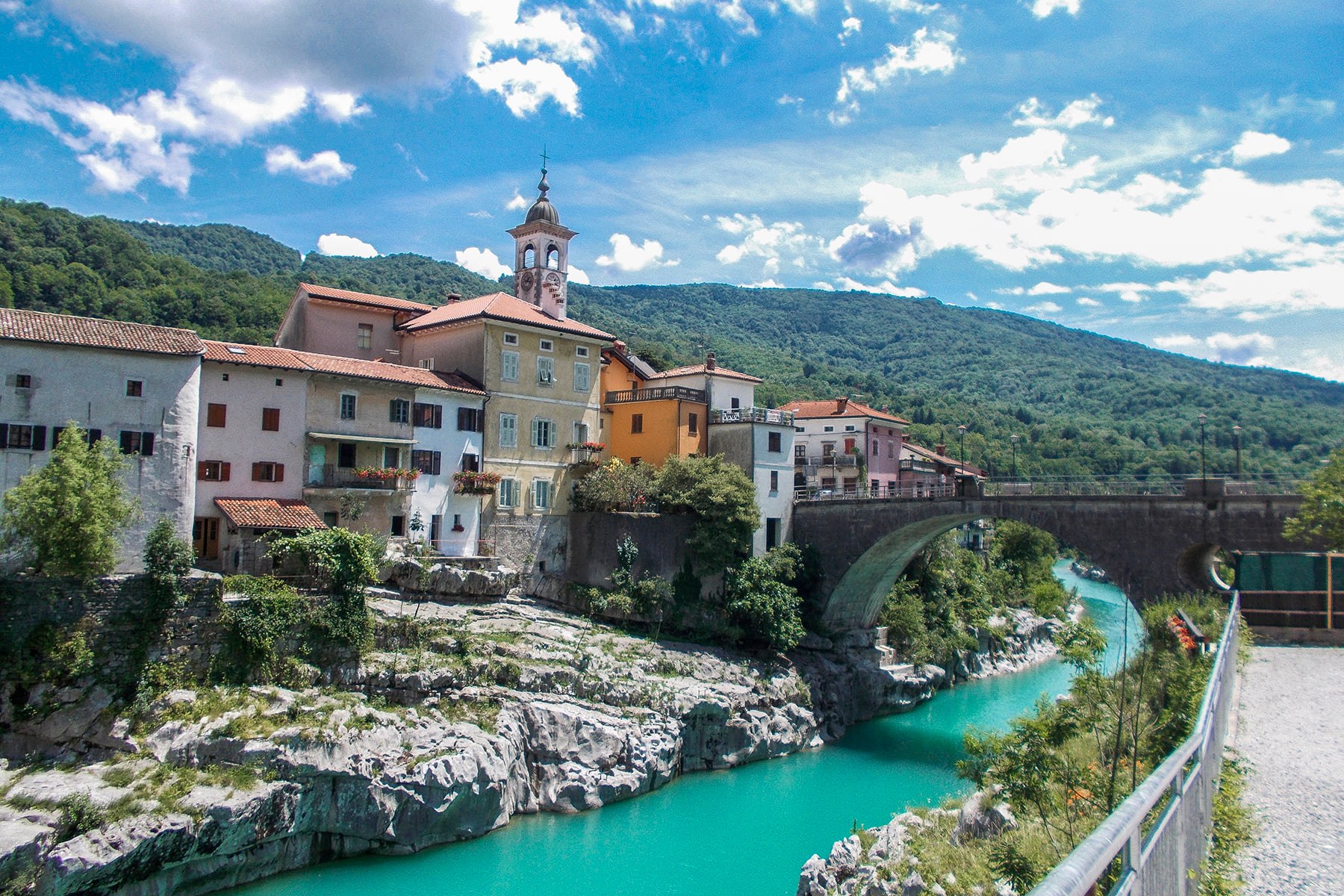 Gornjom Trentskom dolinom vozimo se prema Bovcu. Prolazimo brojne mostove preko brzaka i kaskada dok na vodi vješti kajakaši izvode razne vratolomije. Svako malo zastajemo kako bi se divili nestvarnoj ljepoti rijeke kao i cijelog krajolika nadsvođenog visokim lancima Mangarta i Grintavca.