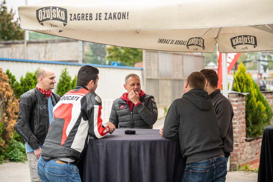 Uz hranu, piće i glazbu DJ-a skupili su se zagrebački (i ne samo zagrebački) Ducatisti na druženje i zajedničku promotivnu vožnju. Hrvatski uvoznik Ducatija za tu je prigodu omogućio svima koji su to željeli iskoristiti 20%-tni popust na Ducati dodatnu opremu i odjeću.