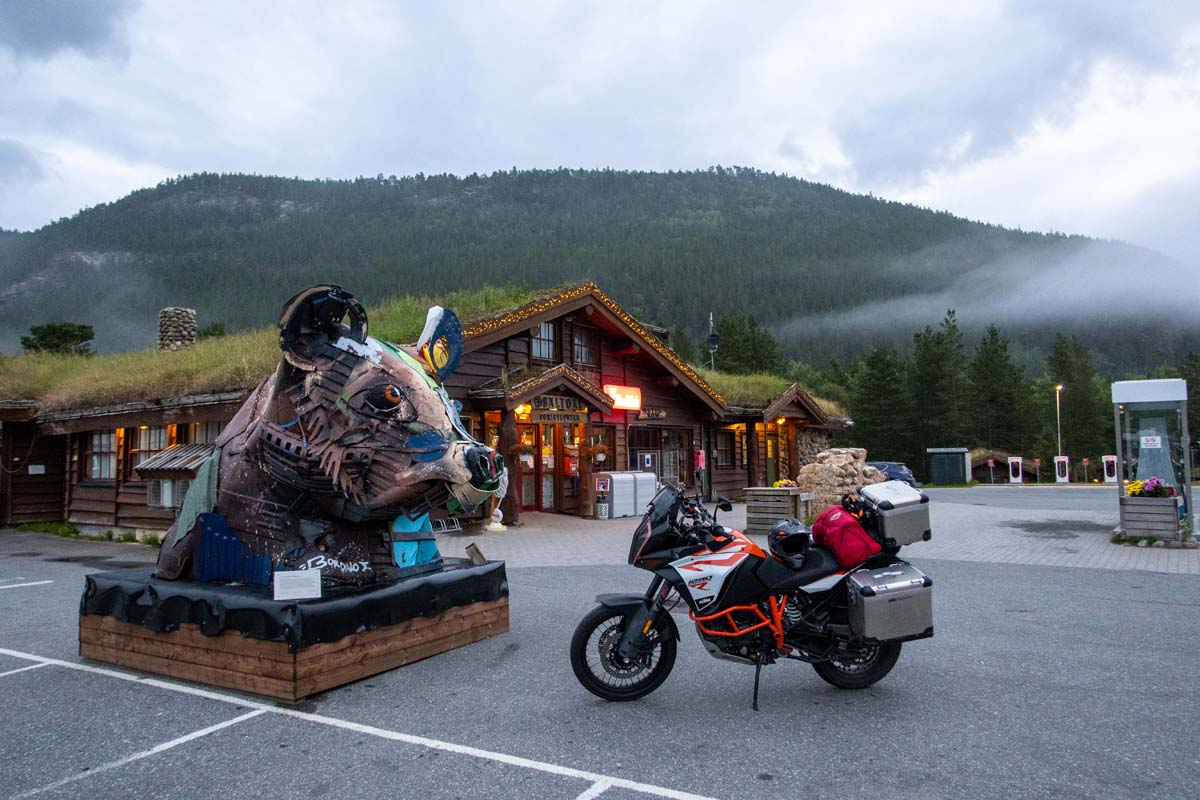 Vrijeme se počelo opasno pogoršavati. Uz kišu puše i jaki vjetar te mog vjernog suputnika spremam u garažu, večeram u McDonaldsu i krećem na odmor da bi ujutro situacija bila nepromijenjena. Kiša i vjetar su još tu te krećem u garažu koja je koštala nevjerojatnih 270 kruna, odnosno 27 eura i hvatam smjer Lillehammera. Vozeći u toj kiši, s temperaturom koja se sad spustila do 8 stupnjeva, a niti pola sata otkako sam pomislio kako mi dobro ide i kako mi kiša - nakon dugog staža s lošim uvjetima koje sa znao sresti u Alpama, nimalo ne kvari doživljaj – stvari postoje još gore.