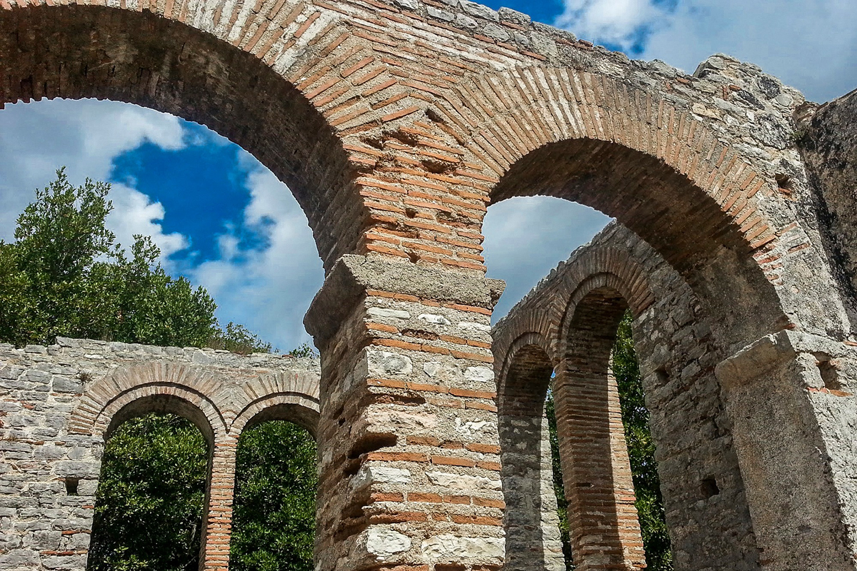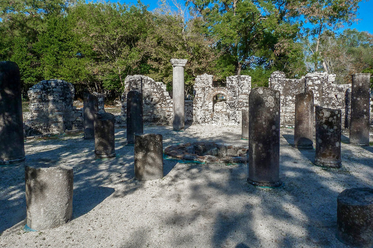 Napuštamo Ksamil i nakon svega par kilometara dolazimo do obale kanala koji povezuje Butrintsku lagunu s otvorenim morem. Preko kanala vozi primitivna drvena skela vučena sajlom. Ali prije prelaska primjećujemo dva autobusa i mnoštvo ljudi. Idemo istražiti kuda su oni to došli i stvarno pogađamo u sridu. Za euro-dva koliko košta ulaznica obilazimo prekrasan arheološki park Butrint. Po onome što vidimo i što čitamo ovaj djelić zemlje je očigledno u povijesti bio izuzetno važan. Tu se nalaze ostaci građevina iz više povijesnih razdoblja. Tako pronalazimo starogrčke ostatke, zatim rimske, bizantske, otomanske i mletačke. Svi su oni ovdje imali svoj utjecaj i svoje interese.