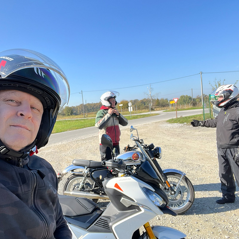 Vožnju smo započeli u Stupniku, iz sjedišta tvrtke Tembo, ovlaštenog uvoznika za Peugeot skutere i BSA motocikle. Ruta nas je vodila kroz predivno Zagorje, s nekoliko planiranih zaustavljanja i jednim neplaniranim događajem koji ćemo zadržati kao malu tajnu.