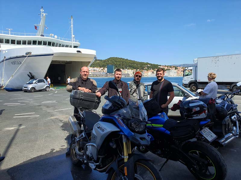 Utorak, 23. lipnja 2020. godine, treći dan. Nimalo ugodno jutro, bura puše kao i prethodni dan i večer. Spremamo se i nadamo se da je samo u Makarskoj takvo vrijeme. Gledamo prognozu i ona je na našoj strani, iako smo morali sakrivati motore u zavjetrinu dok smo ispijali jutarnju kavu u obližnjem kafiću. Naše je današnje odredište Dubrovnik do kojeg ćemo doći preko lijepe Korčule i poluotoka Pelješca. Po buri krećemo u Split na trajekt i ona nas prati sve do samog ulaska u Split, a u Splitu vrijeme ne može biti ljepše, kao da smo u drugoj državi, a ne samo 60-tak kilometara od onog ružnog vremena u Makarskoj. Dolazimo do trajektne luke gdje uzimamo karte do mjesta Vela Luka, Korčula (cijena karte za motor i jednu osobu iznosi 173 kn).