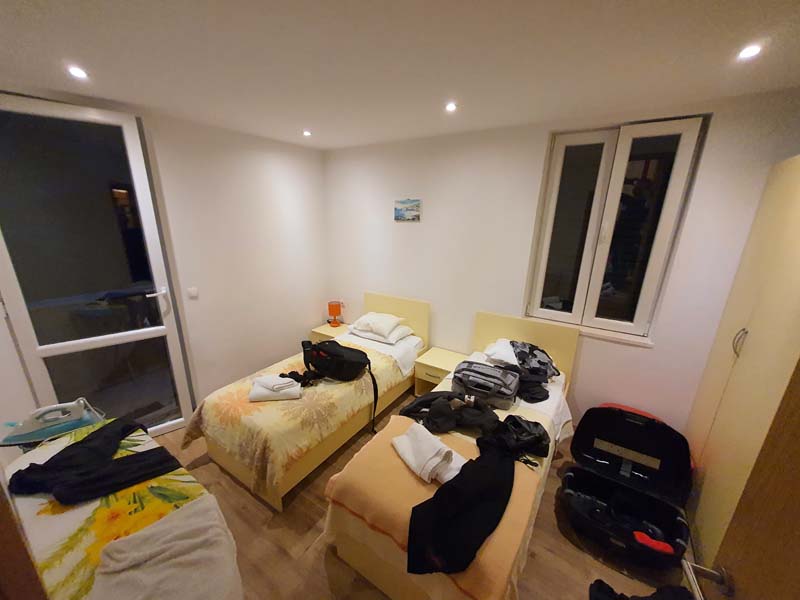 Do Makarske smo išli prateći jadransku obalu, tako da smo uz kratka zaustavljanja na magistrali, stali još u Vodicama i Trogiru. Pred samim ulaskom u Makarsku dočekuje nas lošije vrijeme, poneka kapljica kiše i jak vjetar koji doslovno pomiče motor metar u stranu. Sva sreća to je bilo svega nekoliko kilometara od apartmana pa nismo trebali stajati već smo polako, ali sigurno stigli u apartman. Apartmani su Hrvojevi (Villa Hills, Instagram, Booking – „bacite oko“, preporuka za odmoriti dušu i tijelo) te se tom prilikom u ime nas trojice želim zahvaliti za smještaj i gostoprimstvu, hvala još jednom na svemu! Loše vrijeme nije nas spriječilo da za večeru „bacimo“ roštilj i opustimo se u jacuzziju te tako opušteni i siti završimo drugi dan našeg putovanja.