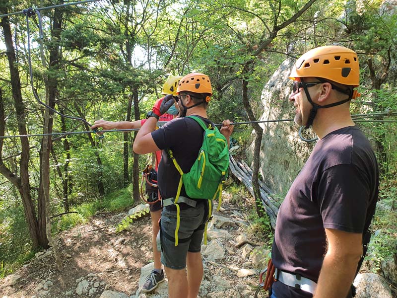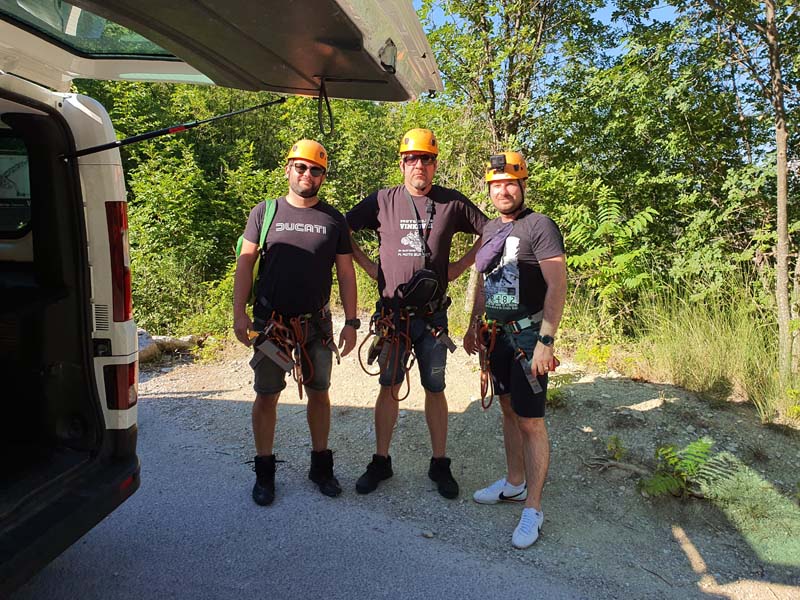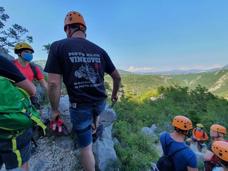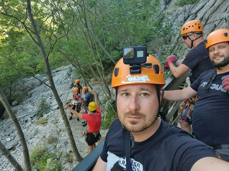 U 16:45 sati dolazimo u Omiš, ulazimo u agenciju te pri potpisivanju izjave o uvjetima korištenja primijetili smo da je Igor pozelenio i ukočio se od straha. Tek tada nam je priznao za svoj strah od visine, tako da nije bilo druge nego staviti ga u čamac i pustiti da pluta Cetinom dok nas trojica sjedamo u kombi koji nas vozi do prve žice. Prije prve žice imamo kratku obuku kada svi isprobavamo na pokaznoj žici. Budući da je meni to bio prvi put, nakon kratke obuke mislio sam da je to ništa, međutim, kad smo došli na prvu žicu koja je najduža i na najvećoj visini, malo me uhvatila panika, to moram priznati. Dariju je također bilo prvi put tako da je Hrvoje otišao prvi, a mi smo nekako zažmirili i „pregrmili“ tu prvu žicu. Prva žica duga je otprilike 700 metara, a na njoj se postiže brzina do 70 km/h. Moram napomenuti da smo imali dvojicu izvrsnih instruktora te je s njima bilo puno lakše to proći. Nakon prve žice, ostalih sedam žica je „mačji kašalj.“ Nakon dva i pol sata čistog adrenalina, kombi nas vraća u centar Omiša gdje nas Igor već čeka na kavi i tako smo obilježili naš peti dan putovanja. (Zipline smo platili 400 kn po osobi, a vožnju čamcem 300 kn).