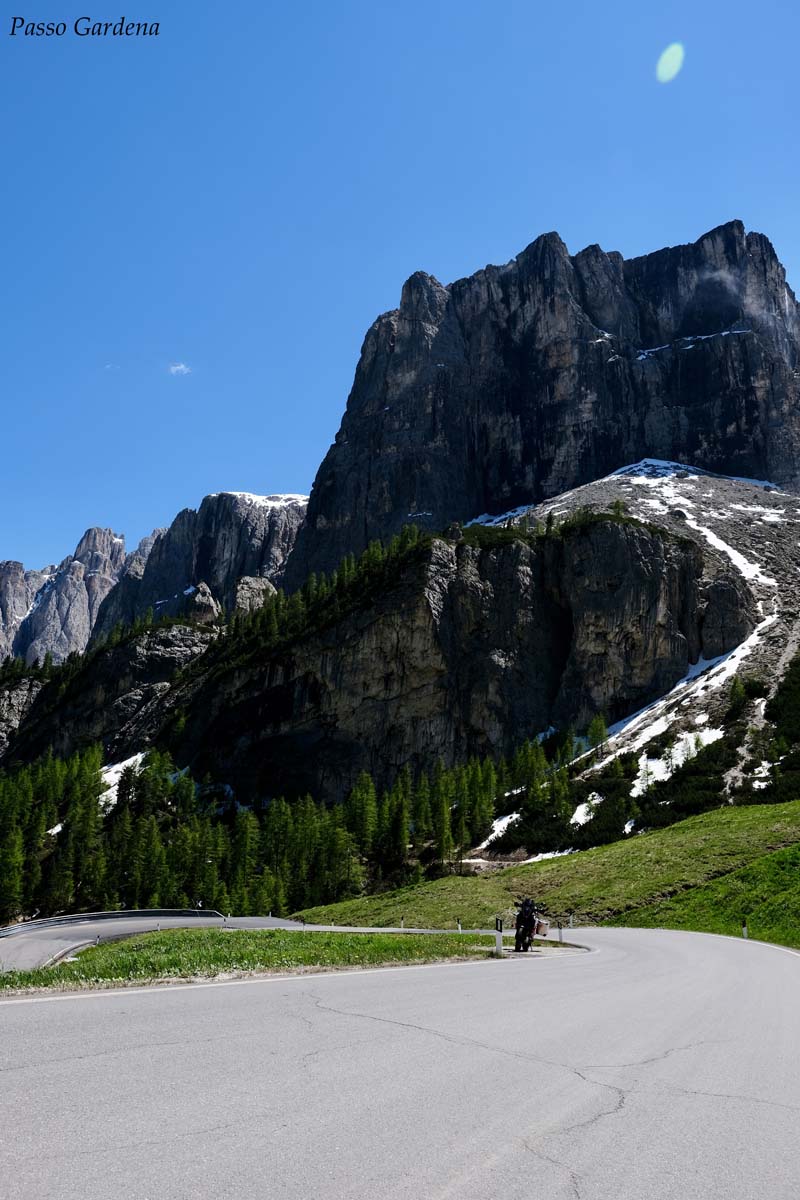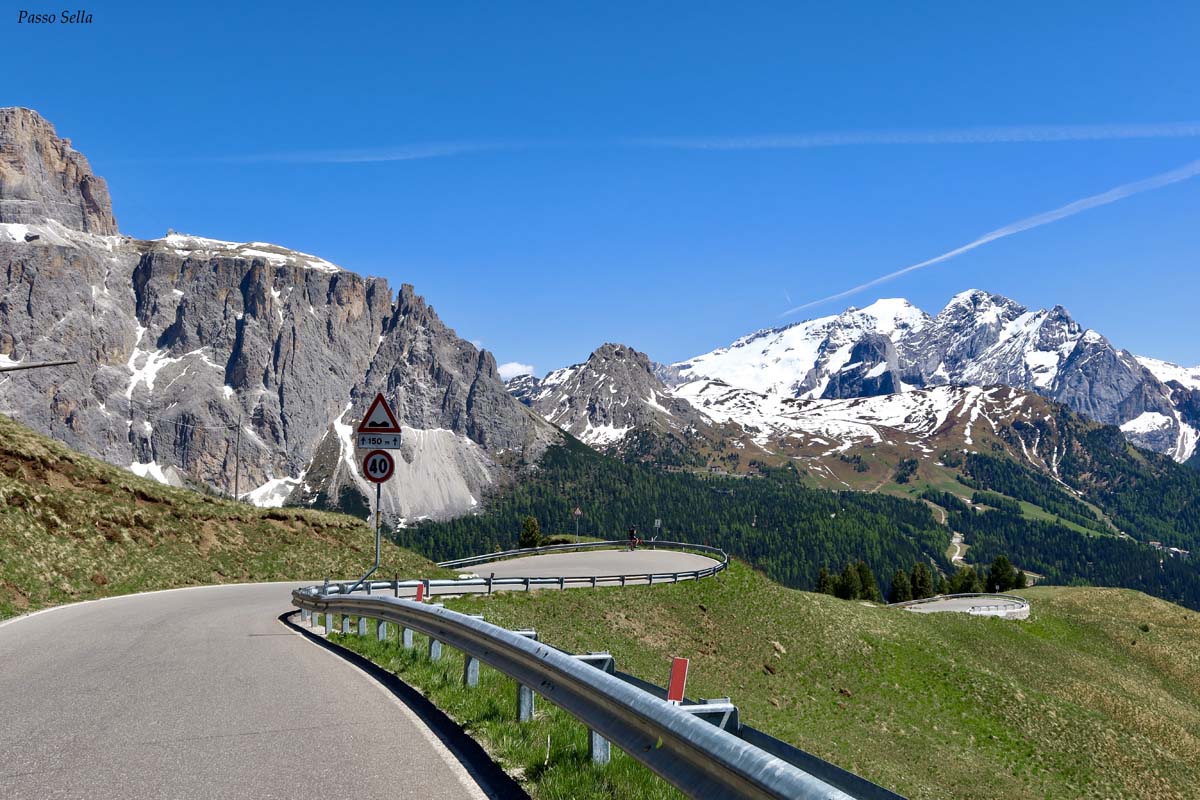 Cesta vodi blizu masivnih stjenovitih planina što stvara poseban ugođaj. Ipak, treba napomenuti da ta cesta zna preplašiti iznenadnim pomicanjem motocikla pri prelasku preko zadnjih godina katranom zakrpanih pukotina, tako da svakako pripazite na te katranske zmije. Nakon Gardene skrećemo lijevo na Passo Sella, koji je nudi prilično sličnu vožnju, pogotovo na spuštanju u Canazzei.