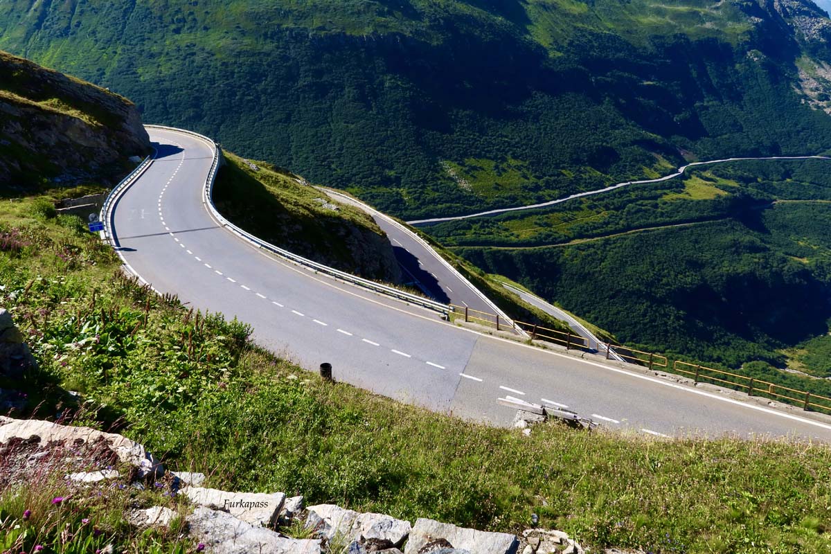 Ajmo na Furkapass! Kreće kao vijugava cesta i odjednom počinju serpentine maskirane u zelenilu, nakon kojih se cesta počinje penjati s većim razmacima do sljedeće serpentine. Na par mjesta pri izlasku iz zavoja izgleda kao da vozim u nebo. Na ovoj dionici je sniman James Bond “Goldfinger” , a kad nema prometa doista izgleda kao da se vozite u nekom filmu.
