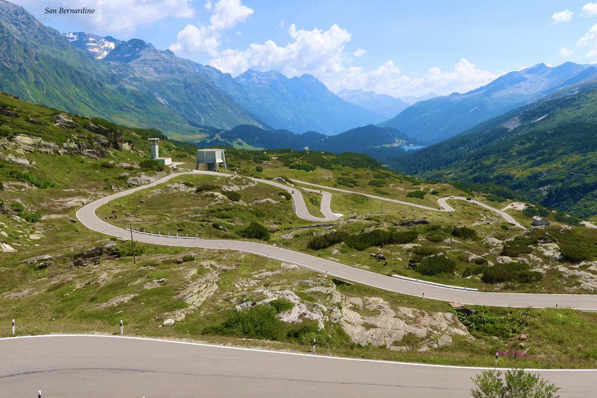 Prema tim prijevojima treba krenuti u smjeru Biasce i dalje prema Bellizoni gdje se kreće na San Bernardino. Na ovoj dionici cesta na nekim dijelovima vodi uz autoput, i tu treba pripaziti. Jer ako zalutate na autoput potrebna je vinjeta koja će vas koštati 40 €. To nije puno ako uzmemo u obzir da vrijedi cijelu godinu, ali za tako kratku dionicu predstavlja nepotrebni trošak.