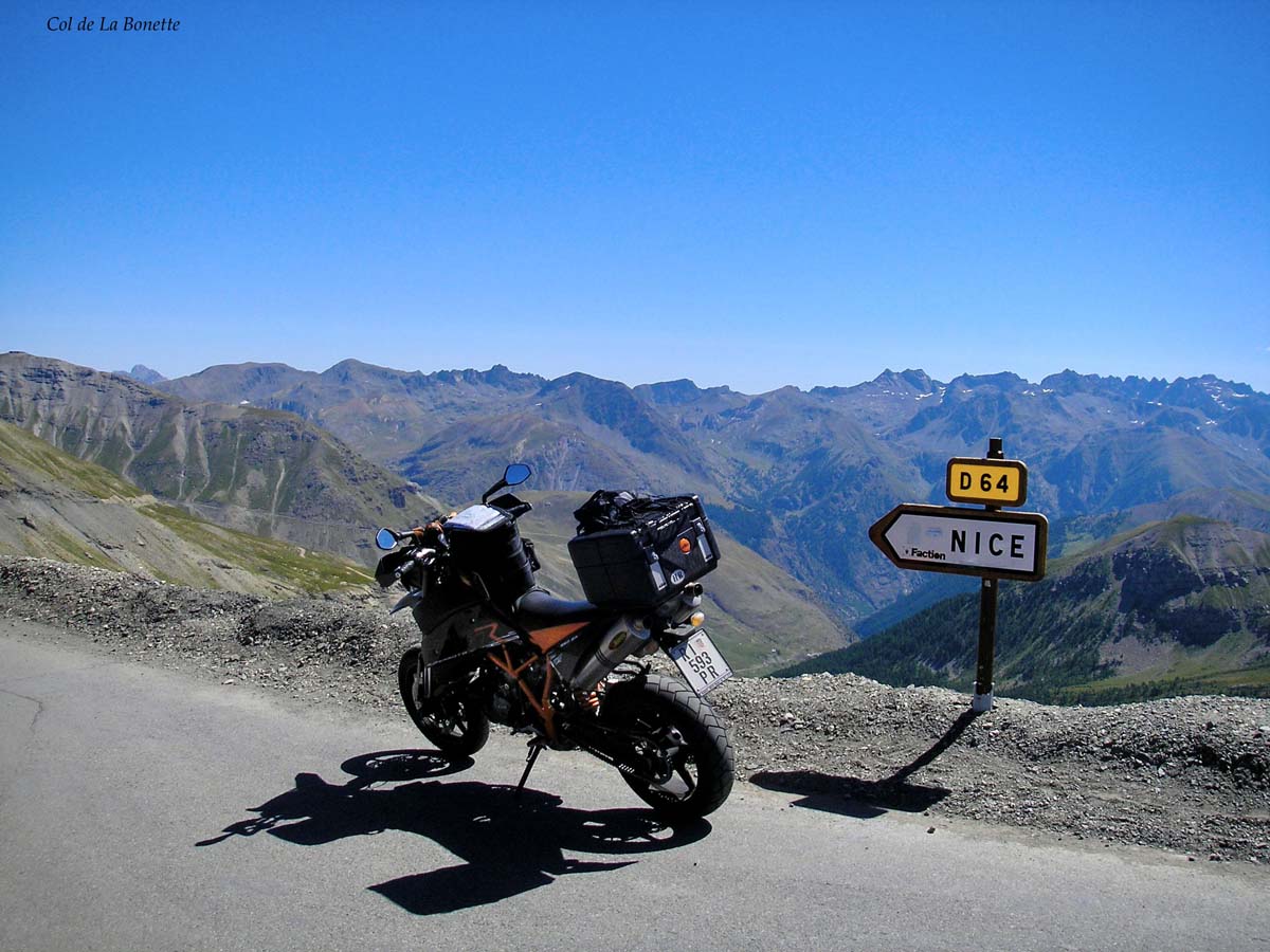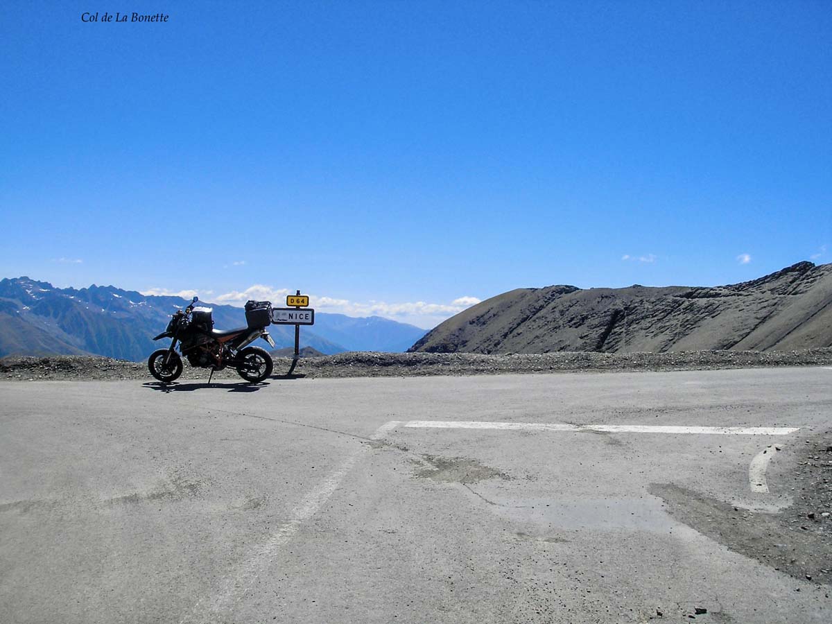 S ovim prijevojem već smo izašli iz Savoije, i sada smo u Alpama Provanse koje se vežu na Azurnu obalu tako da se osjeti toplija klima i mediteranski ugođaj. Bez obzira na blizinu obale, ovdje se nalazi najviši prijevoj Col de Bonette s 2.802 metara nadmorske visine, a prema kojem krećemo zavojitom cestom u dolini. Ta cesta je na nekim mjestima uklesana u stijene i svako toliko začinjena kamenim tunelom u stilu Rute Napoleona. Slijedi Col de Vars preko kojeg je sjajna vožnja s malo lakšim zavojima, a to je i pravi uvod za Bonette na koji se kreće iz mjesta Jausiers.