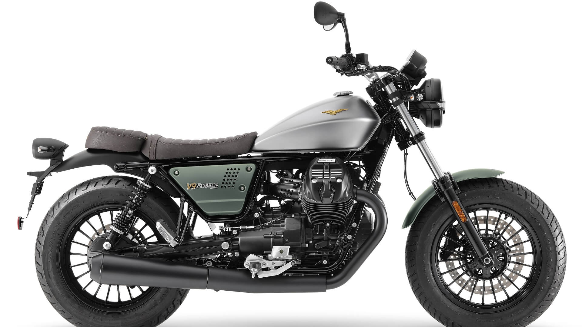 Zelena je isto tako prva boja kojom je Normale, prvi Moto Guzzi, bio ogrnut i vjerojatno najizvornija orlova boja. Centar za stil reinterpretirao ju je suvremenim pristupom s mat završnom obradom te povezao metalik bojama koje izražavaju čvrstoću i autentičnost marke iz Mandella. Boje motocikla usklađene su sa sjedalom prekrivenim materijalom boje prirodne kože koje ističe tipično talijansku pažnju posvećenu detaljima. Drugi posebni detalji su posebni slavljenički logo i zlatna završna obrada poznatog orla.