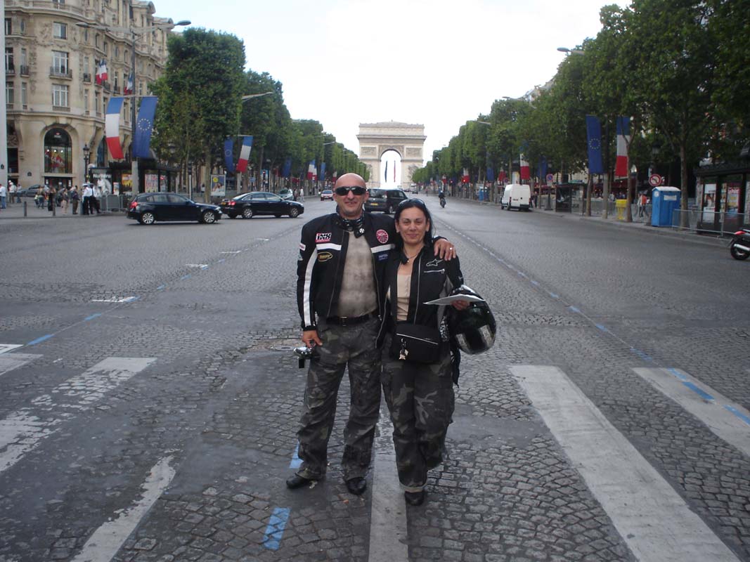 Dugo u noć razgovaramo i planiramo naredne dane. 13 je srpnja dan uoči praznika Francuske državnosti. Ustajemo i krećemo motorima u grad. Sve je puno gandarmerije ali se ne osjeća napetost i sve je dostupno turistima bez ikakovih ograničenja. Prvo stajemo kod trijumfalne kapije na placu Charles de Gaulle odakle se pruža velika avenija Champs-Elysees. Slavoluk pobjede visok 50 metara impozantno je sjećanje na Napoleona. Tu je 26. kolovoza 1944. godine Francuski narod na čelu s generalom de Gaulleom proslavio oslobođenje.