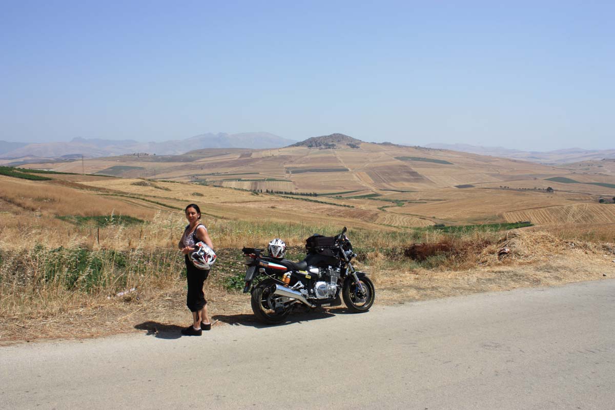 Nakon fotografiranja spuštamo se do Taormine. Ondje se dogovaramo o daljnjem planu puta. Alen će do Corleonea a mi do Agrigenta. To znači da ćemo se još 200-tinjak km voziti zajedno. Prolazimo dolinom brdskog lanca Enne po strašnoj vrućini. Na benzinskim postajama se skidamo i tuširamo bocama vode. I ja koji sam protivnik vožnje bez zaštitne opreme skidam jaknu i vežem je za torbu na koferu. Vrući afrički zrak koji dolazi preko mora pali sve pred sobom pa tako i nas. Gotovo da se ne može disati. Na benzinskoj postaji kod Caltanissetta opraštamo se sa Alenom. On na jednoj petlji odlazi put Corleonea. Gledam ga s nadvožnjaka u ovoj pustinji, izgleda kao da je sam na svijetu on i njegov BMW. Dižem vizir i kažem Nadi: tek smo se razišli a već mi nedostaje. Pravi lik taj Splićo.