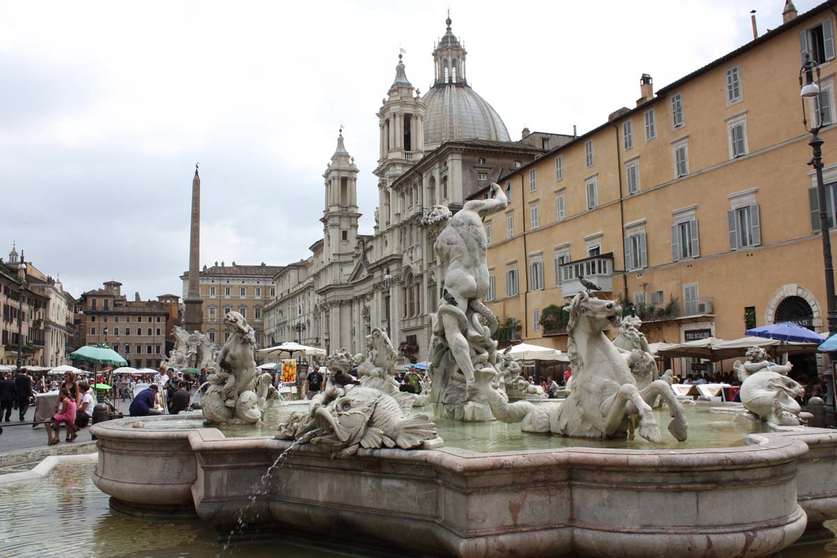 Nama poznatiji je slikar Rafael koji također počiva unutar Pantheona u jednostavnom kamenom sarkofagu na kojem je na latinskom jeziku zapisano: ovdje leži Rafael za čijega se života priroda bojala da će je nadmašiti, ali sada kada je mrtav i ona se boji da će umrijeti. Slijedeće do čega dolazimo poznata je Piazza Navona koja je ujedno i najljepši pješački trg u Rimu. Ovaj raj za pješake prepun je kavana, uličnih zabavljača, umjetnika i prštečih fontana. Središnju fontanu četiriju rijeka projektirao je Bernini.