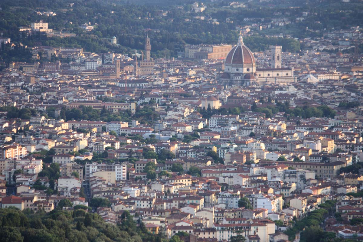 Nedaleko Duoma u jednoj tratoriji naručujemo bruschete, tj. nekoliko malih sendviča na kriškama francuskog kruha koje su prekrivene raznim namazima i povrćem, a servirani su na drvenom podlošku. Za taj „obilni obrok“ konobar nam otima 25 Eu. Polu siti vozimo se do 10 km udaljenog Fiesolea na zapadnom ulasku u Firencu. Ovdje s na vrhu brežuljka smjestio malen gradić van gradske vreve. U parku pod sjenom crnogirca mnoštvo slikara odavde temperama i vodenim bojama slika poznati pogled na Firencu.