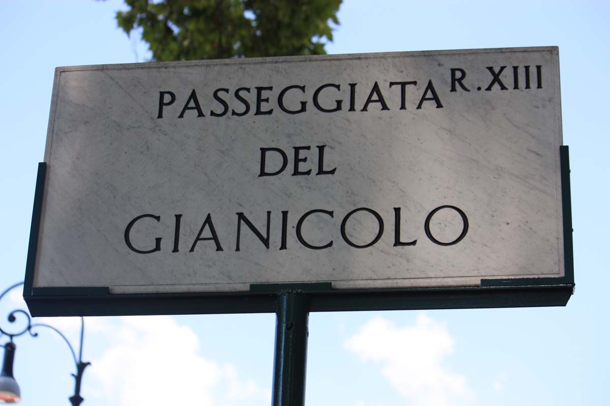 Dugo čekamo u redu za ulazak u Baziliku. Tek što smo se domogli ulaza mene unutra ne puštaju zaštitari zbog prekratkih rukava na majici. Morat ću se zadovoljiti šetnjom van sakralnih objekata unutar Vatikana. Razočaran ali ne i nesretan fotografiram ono što mi je dostupno a toga je doista mnogo. Vruće je 38 C, gomila se tiska u redu za ulazak u crkvu a ja gledam naše sljedeće odredište na karti vječnog grada. Odlazimo brdskom cestom do Gianicola na vrh hrpta koji Vatikan odvaja od Trasteverea i odakle se pružaju najljepši pogledi na grad. Ovdje je također prekrasan park u kojem se održavaju lutkarske predstave. Trgom dominira konjanički spomenik Garibaldiju i njegovoj supruzi Aniti koja je ovdje sahranjena.