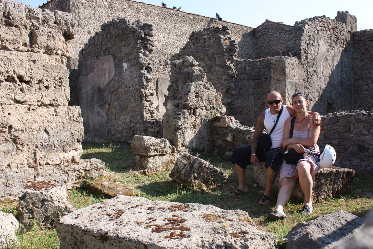 Kacige na glavi lokalno stanovništvo nema ili ih ne koristi, uključujući i policiju koja se ni ne pokušava upustiti u prometna događanja nego i oni krše zakon gdje god to mogu. Prostitutke hodaju danonoćno ulicama no na njih malo tko obraća pažnju. Nakon kraćeg obilaska grada ulazimo u povijesnu jezgru starih i uništenih Pompeja. Ulaznica je 11 eu po osobi. Već na samom ulazu zaključili smo da se radi o nekoć velikom gradu koji je Vezuv nesebično počastio gomilom lave i pepela ne ostavivši mu ni najmanju šansu za preživljavanje. Grad je građen po principu šahovske ploče i sve su ulice gotovo identične.