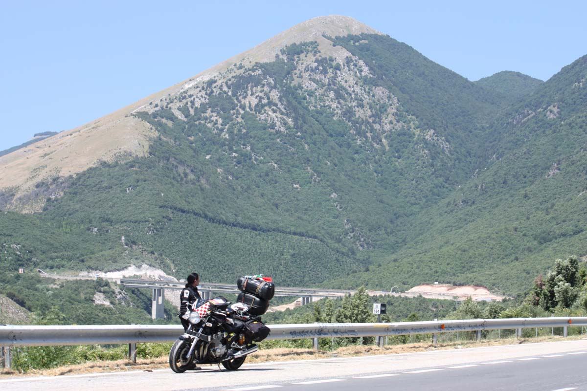 Ovdje u apeninskim brdima dosta je hladnije pa je vožnja puno lakša. Budući da se tu nalazi križanje nekoliko auto strada navigacija nam se malo pogubia pa nas jedan dio puta vodi prema Pescari. Dodala nam je nekih 80-tak km u ukupnom putu. No sve je OK jer je cesta odlična. Prekrasni su planinski pejzaži i prjevoji oko Gran Sasso d Italia.