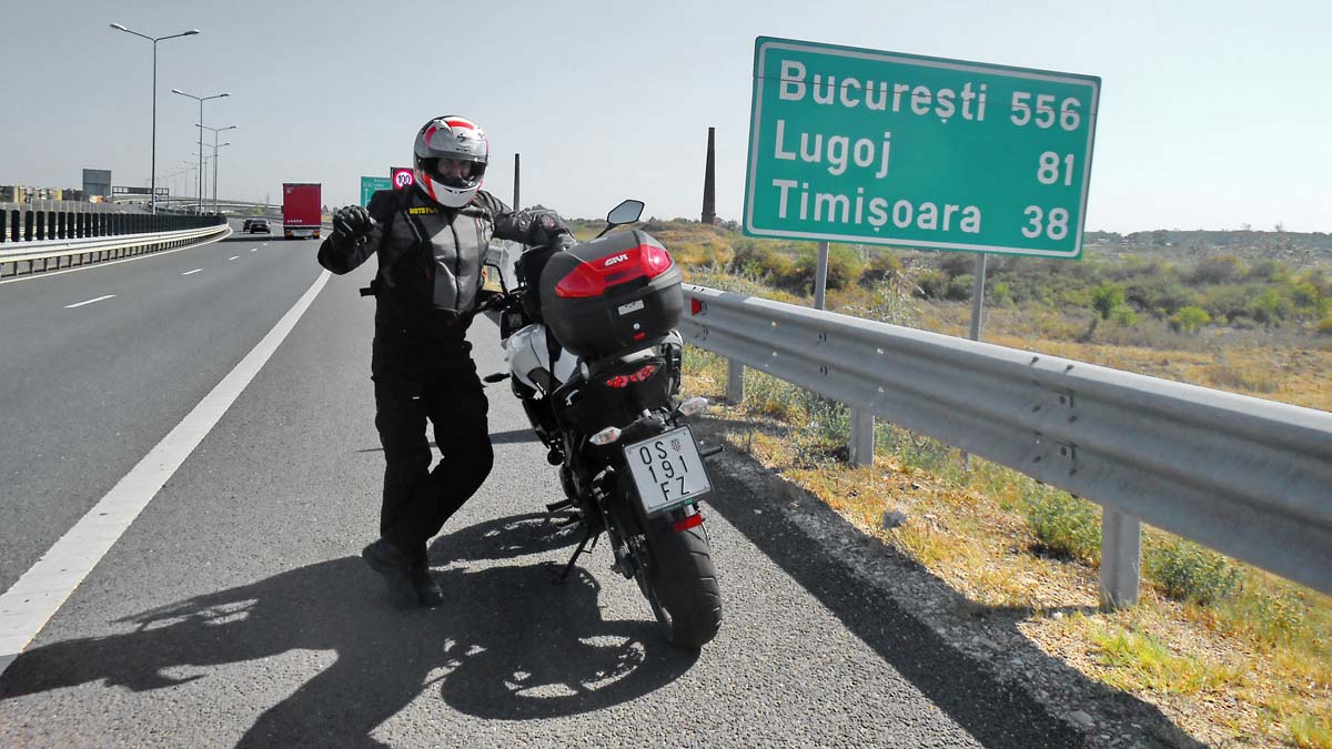 Ovdje je situacija znatno bolja što se tiče prometnica,no budući da put dalje vodi autocestom valja što prije kupiti vinjetu. Kako sam ulaz na autocestu nije baš idealno obilježen može se dogoditi kao u našem slučaju da se previdi ta „sitnica“. Tada sljedi preznojavanje jer povratka više nema, a ni benzinske postaje, ni bilo čega drugog za kupnju vinjete. Sljedeća benz.postaja je tek u Rumunjskoj, nakon graničnog prjelaza Nadlac. Ovdje se možete opustiti jer Rumunjska isključuje motocikle iz sustava naplate cestarine. Doduše ta povlastica i nije baš hvale vrijedna s obzirom da auto cesta vodi samo do grada Arada,od granice udaljenog tek 40-tak km. Ostali dio je trenutno u fazi rekonstrukcije. Nakon toga prema gradu Devi vozi se lokalnom cestom,ako se to uopće može nazvati cestom jer je u izuzetno lošem stanju (do sada najgorem ikada viđenom ). Unatoč toj činjenici promet ovdje nije ni malo reduciran što potvrđuju duge kolone vozila svih kategorija koje se njome kreću. Pretežno su to vozila Ukrainskih,Turskih i Bugarskih reg.oznaka s obzirom da je ova cesta dio poveznice sa istokom starog kontinenta i izlaza na Crno more. Pravo je čudo da u tom metežu i prema stanju ceste nema učestalih prometnih nezgoda. I na ovom primjeru je vidljivo kako se osiromašena Rumunjska još uvijek bori sa posljedicama Cauceschove vladavine.