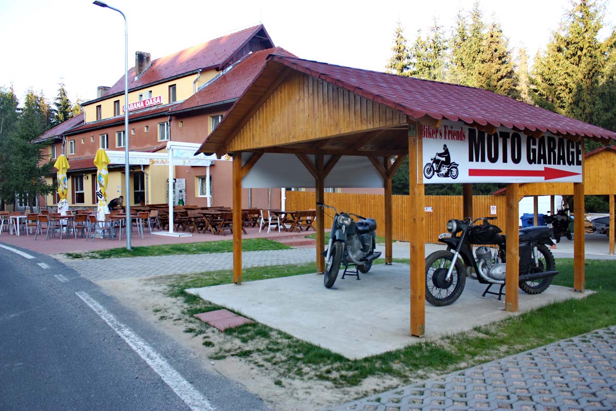 Uz cestu se niže par motela u Alpskom stilu, a ispred njih su uglavnom natpisi “Bikers welcome“. Na parkingu istih su parkirani motocikli koji čekaju svoje jahače bilo da su svratili na konak ili pak samo na kraći predah. U ovom dijelu cesta se probija kroz gustu borovu šumu. Sljedeći rijeku Sebes u svom gorskom toku Transalpina dolazi na drugo jezero koje joj se našlo na putu,preljepo jezero Oasa. Ovdje je idealno mjesto za noćenje u motelu Cabana Oasa. Motel u svojoj ponudi ima i novo otvorene bungalove s kupatilom , tv-om i garažom za motore. Cabana Oasa nalazi se tik do jezera. S jedne strane omeđena je borovinom uz jezero, a s druge planinskim zavojima ove sjajne ceste. Sterilno čisti zrak i miris bora pravi je melem za pluća i dišne puteve, a cijeli okoliš doima se gotovo nestvarno. Ovako valjda izgleda raj na zemlji. Cijena noćenja s doručkom u Cabana Oasa stoji 14 eu po osobi. Idealno vrijeme za vožnju i fotografiranje prirodnih ljepota koje prate Transalpinu je jutro i rano prijepodne. Zbog toga što su vidici tada kristalno čisti nakon noćne magle nastale usljed velikih temperaturnih razlika tjekom 24 h. Temperature se ovdje usred ljeta noću spuštaju do 2 celz.