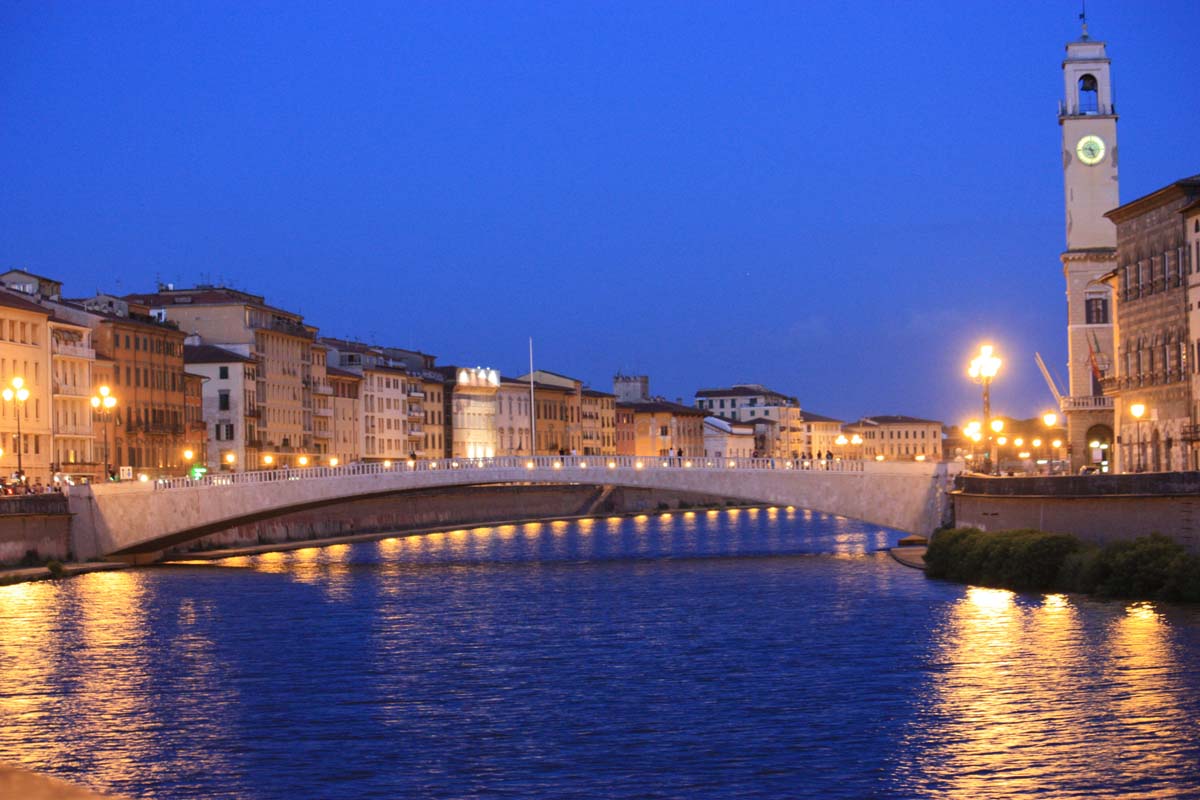 Nakon osvježenja predveče odlazimo do Pise koja je od kampa udaljena 12 km . Stižemo ravno do „Polja čudesa“ najprepoznatljivijeg trga u Italiji. Njegov zeleni travnati sag okružuje romaničke dragulje Pise: katedralu, krstionicu, Camposanto i zvonik, jedan od najpoznatijih simbola Italije, poznatiji kao kosi toranj. Izgleda fantastično. Gradnja ovog tornja počela je 1173 godine. Zvonik se počeo naginjati kada su graditelji stigli do trećeg kata. Bio je pretežak za muljevito tlo. Radovi su zaustavljeni do 1275 godine kada je odlučeno da se toranj pokuša ispraviti dograđivanjem prema okomici. Do 1990 godine toranj je svake godine posjećivalo više od milijun turista, pa se činilo da je njegovo rušenje neizbježno. Toranj je radi rekonstrukcije bio zatvoren do 2001 godine i od tada je posjet moguć samo s vodičem i ograničenim brojem posjetitelja. Uz toranj se nalazi stup na kojem je spomenik vučici, Romulu i Remu. Odlučili smo motorom istražiti i druge dijelove Pise. Vozeći se uz obalu rijeke Arno dolazimo do crkvice Santa Maria Della Spina. Crkva navodno čuva trn iz kristove krune koji je iz svete zemlje donio križar iz Pise.