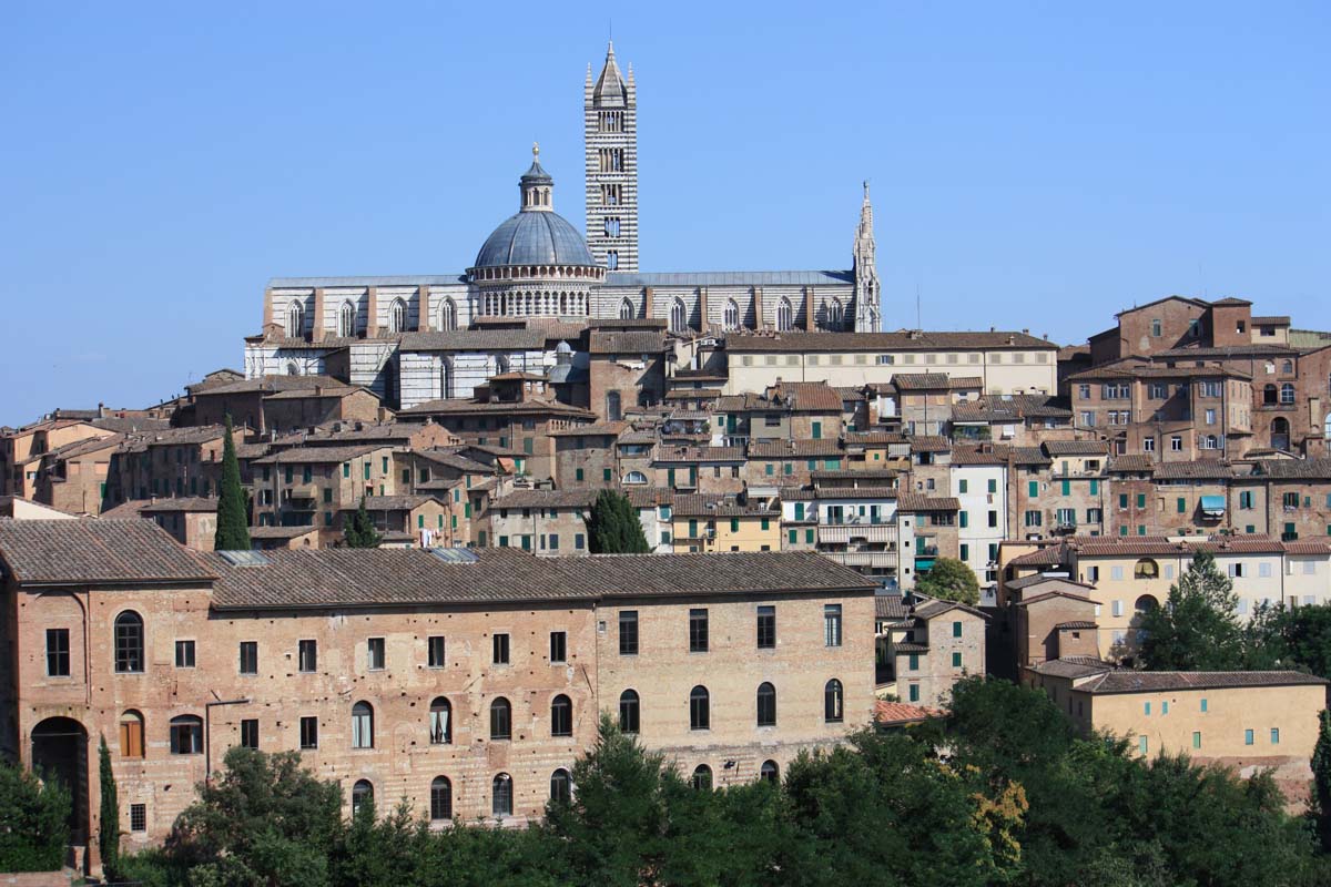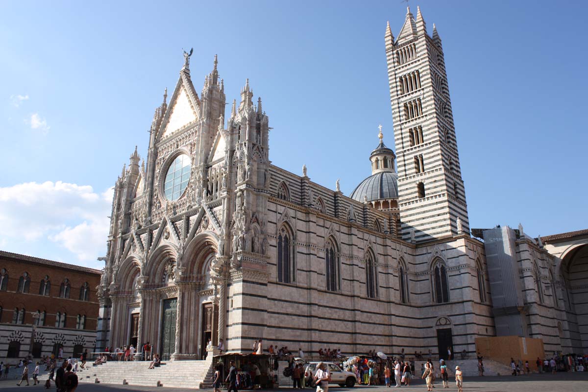 Kroz veliku gužvu dolazimo do Piazze del Campo. To je najljepši trg u Italiji, a mnogi kažu i u Europi. 1100-te godine sagrađen je povrh Rimskog foruma. U obliku je polumjeseca koji se ljevkasto spušta prema Palazo Pubblico, Gradskoj vječnici. Trg je ogroman, toliki da se na njemu dva puta godišnje održavaju konjske utrke. Mnoštvo ovdje dolazi na promenadu, razgovore ili kratki odmor. Većina sjedi na podu i pogledom kruži uokolo. Nakon dužeg odmora teško se odvajamo od ove magnetne privlačnosti raskošnog trga i kroz mnoštvo se probijamo prema Piazi del Duomo do poznate katedrale. Gotička katedrala divovskih razmjera riznica je prepuna umjetnina majstora poput Michelangela, Pisana, Duccia i Donattela. Dugo se zadržavamo unutar Duoma gdje se u tišini divimo bogatstvu umjetničkih djela. Ova katedrala je prema zamisli graditelja trebala biti največa katedrala u kršćanskom svijetu, ali kuga je 1348. godine omela taj plan. Siena je grad iz kojega je teško otići, ali mi ujutro moramo dalje pa je vrijeme da se vratimo u Firencu.