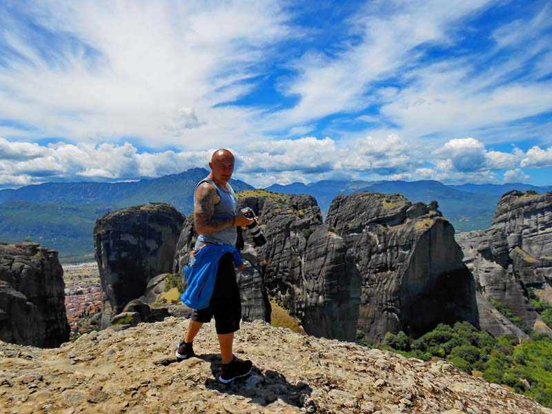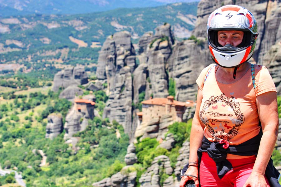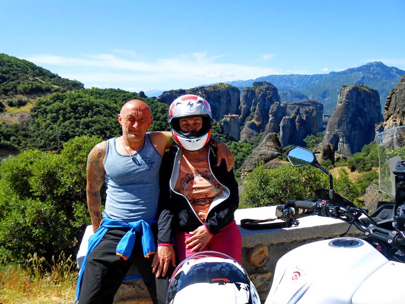 Na ovaj način Grci su cijenama ove godine uspjeli preteći čak i voljenu Italiju za koju znamo da je najskuplja država u našem okruženju. Po smještaju u kampu koji se nalazi tik do znamenitih stijena odlazimo do grada na kebap i pivo. Veče nam protiče u baru campa gdje nam se oko 22 h priključuje Dorijan iz Kutine koji je tek stigao na malom Tenereu. Jutro i prijepodne odvojili smo za posjet veličanstvenim manastirima koji se uzdižu okomito na tamnosivim stjenovitim tornjevima 300 m nadmorske visine. Ovaj prirodni fenomen nastao je prije nekoliko milijuna godina kao posljedica erozija i potresa. Prvi pustinjaci su se ovdje naselili prije 1000 godina. Nakon njih se ovdje razvila redovnička zajednica koja u 14 st. počinje graditi manastire kako bi po povjesnim zapisima bili bliže Bogu a i sigurni od neželjenih posjetilaca. Ukupno je sagrađeno 24 manastira.