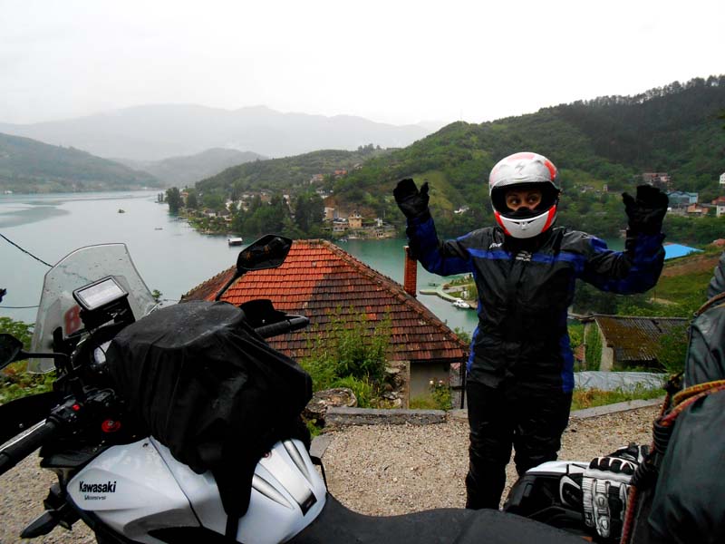 Od ovog zapažanja udaljio nas je veliki crni oblak koji se nadvio nad cijelim područjem i uskoro nam priuštio ugođaj kakvog se nebi posramili niti vodeći svijetski Aqua parkovi. Brzinom svjetlosti pronalazimo zaklon i oblačimo kišna odjela. Već navikli na kišne uvjete iz predhodnih putovanja hrabro grabimo prema srcu Bosne. Na Hifa benz. postaji u Olovu prodavač Medin nas časti kavom jer gorivo plaćamo karticom a BiH maraka nemamo. Dok se u ugodnom razgovoru s njim odmaramo uviđamo da se situacija s vremenom pogoršava. Smrklo se sa svih strana pa nastavljamo dalje. Nažalost ljepotu Neretve i predivnih mjesta uz nju neuspjevamo zabilježiti fotografijom jer lije kao iz kabla. Tek kod Mostara kiša posustaje no već je mrkla noć pa žurimo put Igala na crnogorskoj rivijeri gdje imamo dogovoren smještaj za prvu noć. Ljubazni domaćin dočekao nas je s vrućim čajem i kolačićima tako da smo ubrzo bili kao novi nakon ove prve dionice puta. Jutro u Igalu svanulo je obasjano suncem pa smo nakon kave odjurili do prve autopraonice oprati svu prljavštinu s motora iz predhodnog dana.