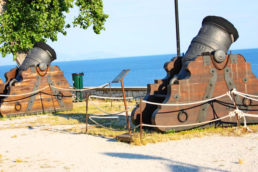 Nova utvrda na kojoj se trenutno nalazimo izgrađena je između 1576 i 1645. god. a sa starom tvrđavom povezana je podzemnim tunelima. Krunu pogleda na grad i njegovu vizuru čine tornjevi crkava,posebno onaj raskošne crkve Agios Spiridon koja se nalazi usred mnoštva starih kuća i trgova. Nakon što smo oči odmorili ovim ljepim prizorom grada i njegove osobnosti spuštamo se s utvrde do pizzerije u centru gdje njezin vlasnik već po običaju naganja žgoljavog konobara vičući „Nikola. . Nikola“. . !!!!!!Nikola se jadan sapliće oko gusto raspoređenih stolova što stvara komičnu sliku na terasi.