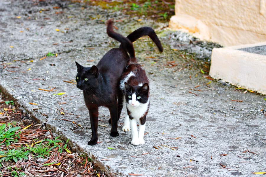 Nemamo dojam da se nalazimo u Grčkoj nego više u nekoj toscanskoj ili provansanskoj čaroliji. Očima širom otvorenim kao djeca u tvornici igračaka upijamo svu ljepotu ovog posebnog grada. Nakon što smo se prilično nahodali odlazimo do campa na počinak, barem smo tako mislili. Dolaskom do naše kućice dočekao nas je odbor za doček u vidu tri – četiri mačije njuškice koje su nas znatiželjno promatrale sa sigurne udaljenosti. To je bilo više no dovoljno da nas sjeti na naše dvije ljubimice Signoru i Kalistu koje smo povjerili na čuvanje našoj predobroj teti čuvalici Martini. Naša grčka priča je zahvaljujući ovim macama dobila poseban ugođaj. Sve naredne dane našeg boravka na Krfu obilježila su ova draga bića. Budući da ljetna sezona još nije počela ne radi ni restoran a niti trgovina u kampu pa su ove cice prepuštene same sebi. Da stvar bude gora jedna od njih je mama i doji jedno predivno pufnasto mače koje ju je doslovce pretvorilo u hodajući kostur. Istog trena bacili smo se u akciju na način da smo nahranili gladne životinje i dali im svježe vode.