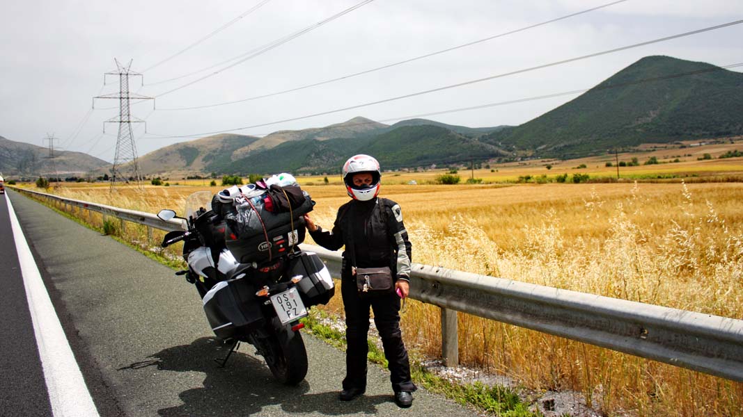 Na jednoj strmoj nizbrdici autocestu prelazi ogromna kornjača. Nismo se uspjeli zaustaviti da je maknemo sa ceste, no sigurno je uspješno prešla na drugu stranu jer smo trenutno jedini na ovoj dionici. Prilično je vruće pa se zaustavljamo samo da utočimo gorivo i popijemo nešto tekućine. Usporava nas kao što smo već spomenuli činjenica da na grčkim auto cestama nema benzinskih postaja nego su one uglavnom udaljene par km od njih. Kod Soluna se odvajamo prema Makedoniji i prolazimo pored memorijalnog spomen polja solunske bitke. U Makedoniju ulazimo gotovo bez ikakve provjere graničnih službi, jer kako nam rekoše Hrvatska je za njih europska i prijateljska zemlja te nema potrebe za carinskim formalnostima. Ostali putnici iz okolnih država bivše SFRJ zaustavljeni stoje u kolonama pod vrelim makedonskim suncem. Mi doduše imamo drugi problem jer valjalo bi podmazati novi lanac na motoru a sprej nemamo.