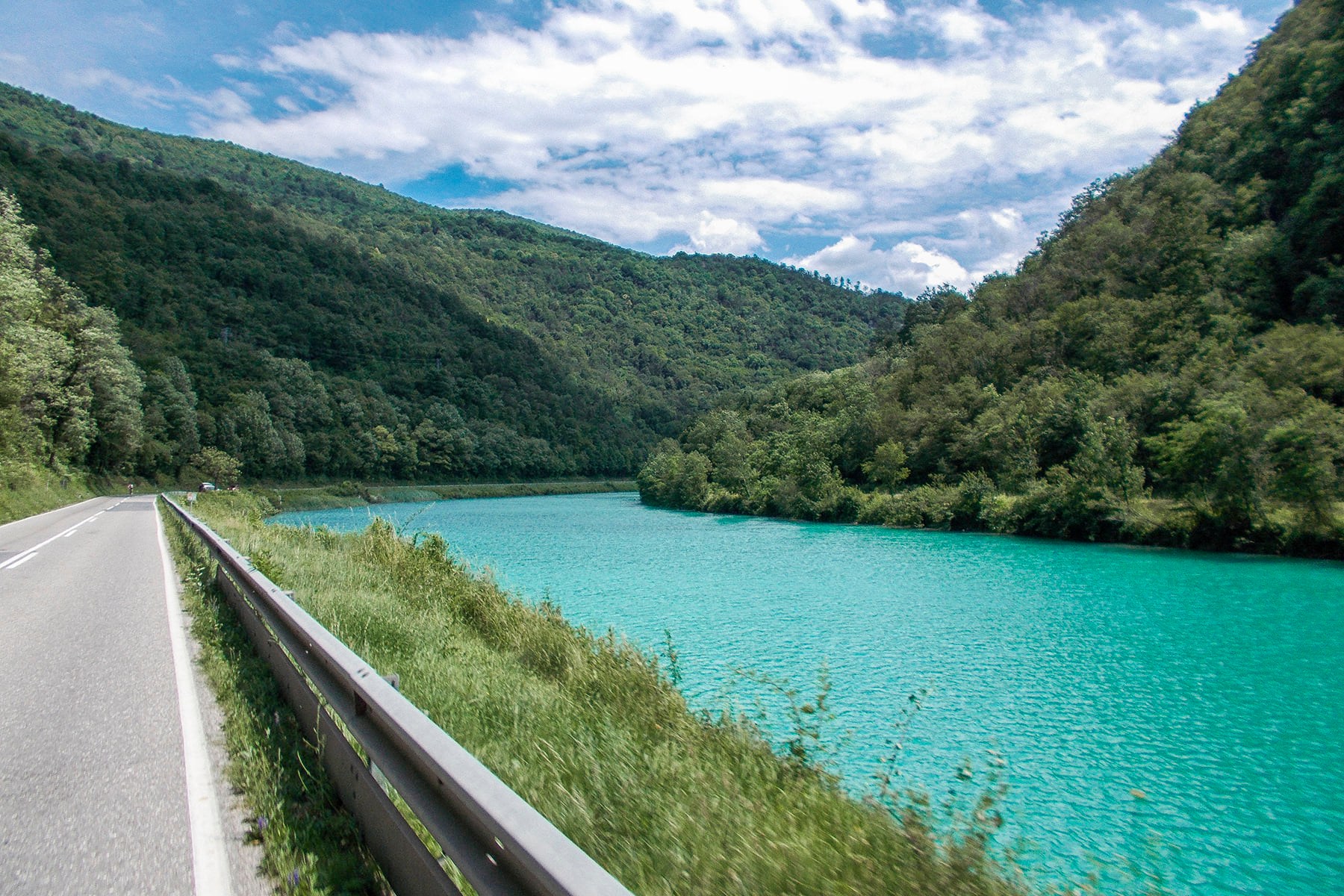 Nastavljamo prema jugu, prolazimo Tolmin i kod Mosta na Soči nailazimo na akumulacijsko jezero nastalo izgradnjom hidroelektrane. Odavde se cesti i rijeci pridružuje i pruga te sve tri zajedno vijugaju prema mjestu Kanal na Soči. U tom srednjem toku Soča je i dalje fascinantno svijetloplava i uzbudljivo brza na pojedinim mjestima.